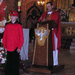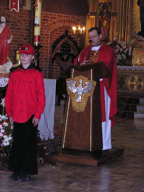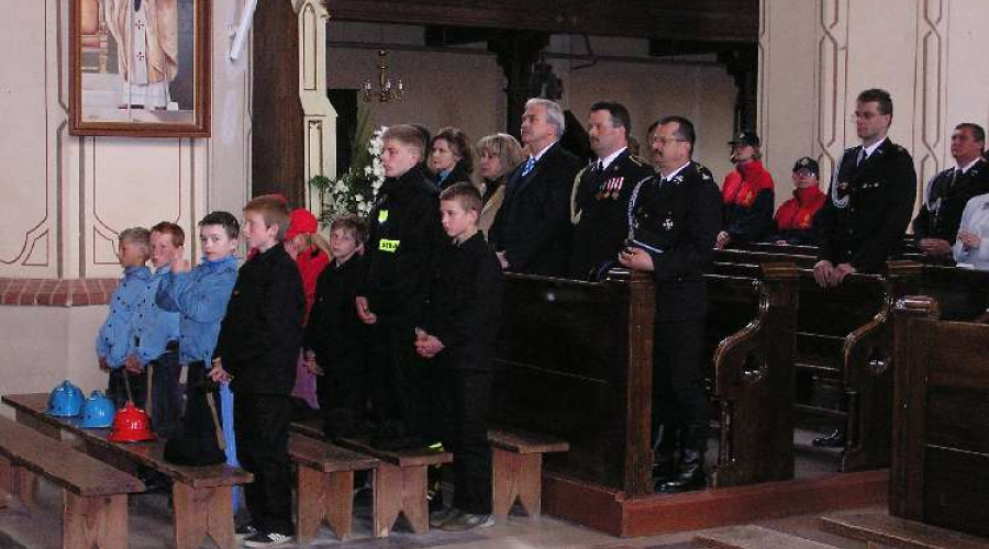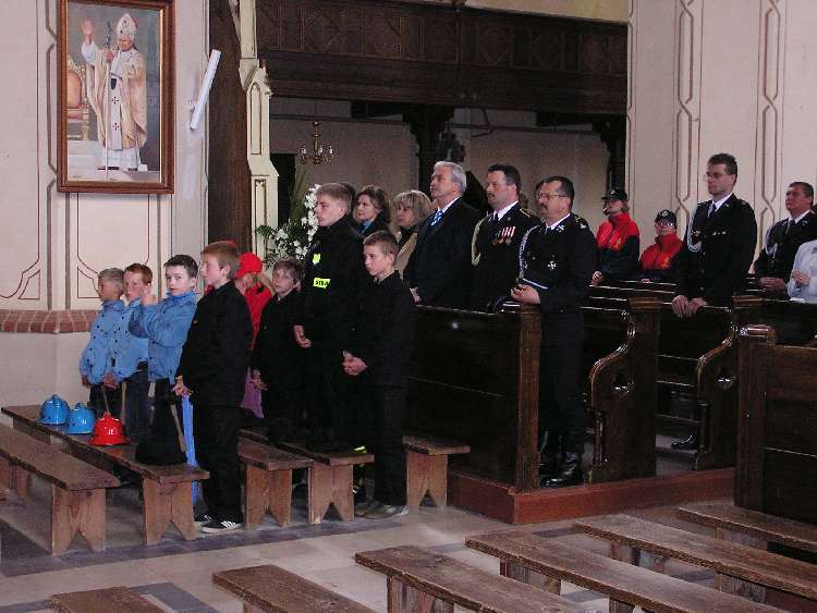 Mszy Świętej przewodniczył ks. prob Andrzej Dowal przy zgromadzonych w świątyni przedstawicielach Władz lokalnych, delegacjach Jednostek Ochotniczej Straży Pożarnej i parafianach.
