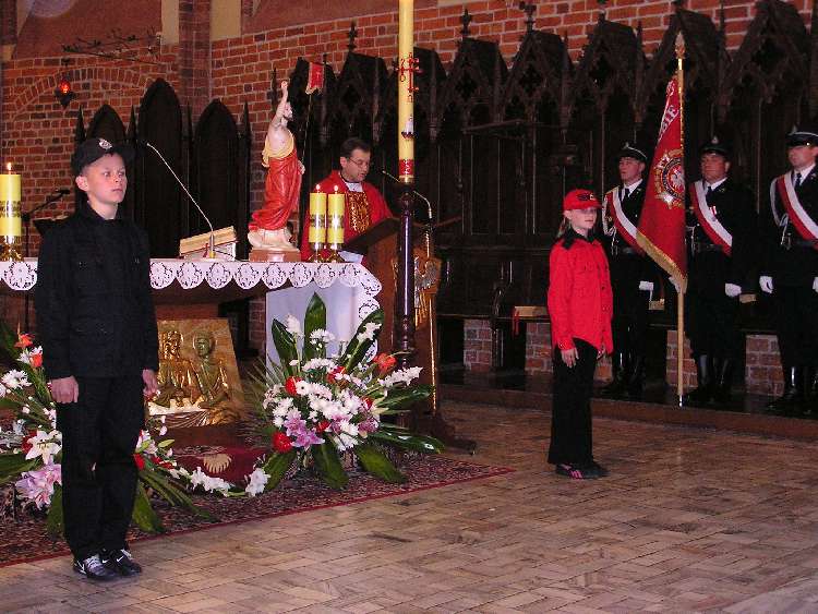 Ks. proboszcz w Słowie Bożym podkreślał znaczenie służby jakiej podejmują się Strażacy dając za przykład patrona św. Floriana i św. Maksymilian Marię Kolbego.