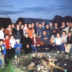 Pierwsze spotkanie tzw. „Salki" miało miejsce w kwietniu 1985r i rozpoczęło ono cykl regularnych spotkań grupy. Elementem spotkań był śpiew, modlitwa, rozważania biblijne z księdzem. W każdą niedzielę podczas Mszy św. o 10-ej młodzież śpiewała przy akompaniamencie gitar. Były również wspólne wyjazdy, pielgrzymki , zabawy. Ta ówczesna młodzież, której lata dojrzewania wyznaczał rytm sobotnich i niedzielnych spotkań, czynnie działała do roku 1995. Minęło ponad 10 lat... Wielu z nas założyło rodziny, wybrało już swój ą drogę życiową, wyjechało w różne strony kraju. 27 maja okazało się, że mimo upływu czasu wciąż jesteśmy tacy sami, że siwiejące włosy czy łysiejące czoła nie maja znaczenia. Spotkanie rozpoczęło się Mszą Św. o 18 .00, którą odprawił zaproszony na spotkanie, jeden z dawnych opiekunów ówczesnej młodzieży - ksiądz Tomasz Piotrowski . Potem odbyło się ognisko członków „Salki" z żonami, mężami, dziećmi... Wspominając te sobotnie spotkanie, już myślimy o kolejnym.