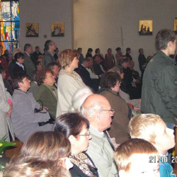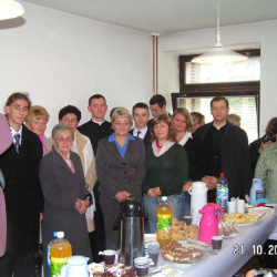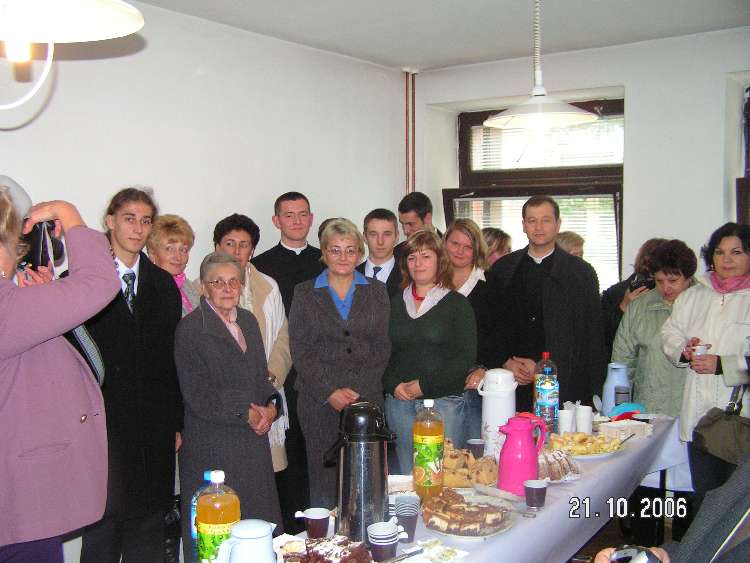 Z tej okazji grupa parafian z księdzem proboszczem udała się autokarem do Szczecina. Po uczestnictwie we Mszy Świętej wszyscy udali się na kawę i ciasto, aby tam złożyć życzenia dla obłóczonego Kryspina. Wszyscy byli bardzo wzruszeni i szczęśliwi. Teraz pozostaje tylko modlić się za Kryspina i pozostałych kleryków z naszej parafii Adama i Maćka, aby wytrwali na drodze powołania.