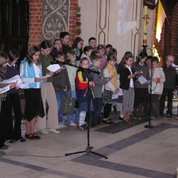 Uroczyste obchody rozpoczęły się od montażu słowno-muzycznego przygotowanego przez dzieci z Eucharystycznego Ruchu Młodych, Bożego Przystanku pod kierunkiem s. Tymotei i pana Radka Zielińskiego.