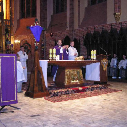 O godz. 21 rozpoczęła się uroczysta Msza Św., po której nasza młodzież śpiewała ulubione pieśni Ojca Świętego. Wszystko zostało spięte Apelem Jasnogórskim, w którym modliliśmy się o szybką beatyfikacje Jana Pawła II.