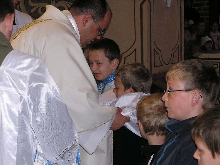 W III Niedzielę Wielkanocną podczas Mszy Św. o godz. 9.00 do grona ministrantów zostali włączeni nowi chłopcy.