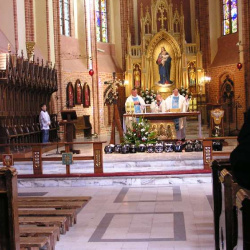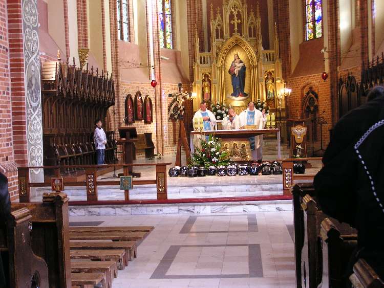 Spotkanie rozpoczęło się Mszą Świętą, której przewodniczył ks. Robert Górski z Kołobrzegu, a Słowo Boże wygłosił ks. prob. Dariusz Żarkowski z Kamienia Pomorskiego. We Mszy Świętej uczestniczyli również ks. Robert Wróbel i ks. Piotr wikariusz Sanktuarium w Trzebiatowie.