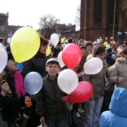 Przed trzecią rocznicą śmierci Jana Pawła II, jak w poprzednich latach, nasze dzieci wypuściły balony na cześć naszego Wielkiego Papieża.