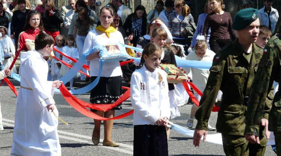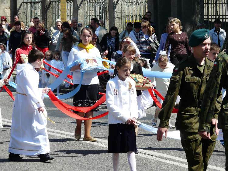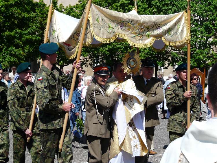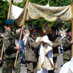 Po Mszy Świętej w Sanktuarium wyruszyła Procesja do Jednostki Wojska Polskiego. Zgromadziła ona jak zawsze wielu uczestników.