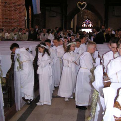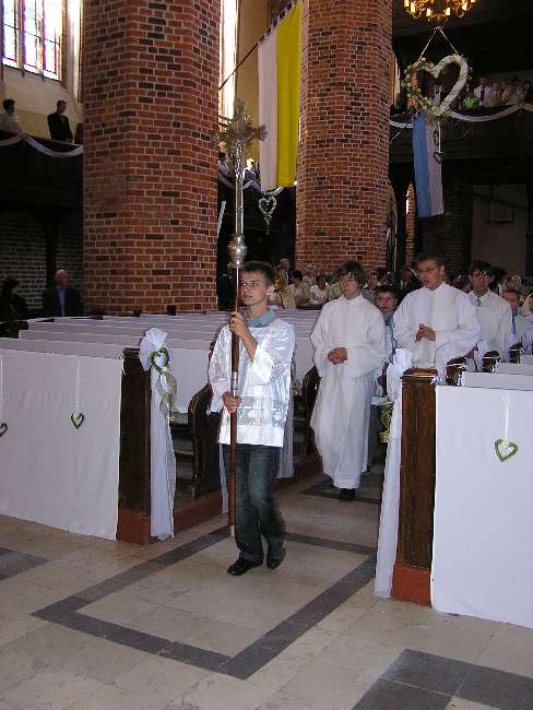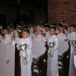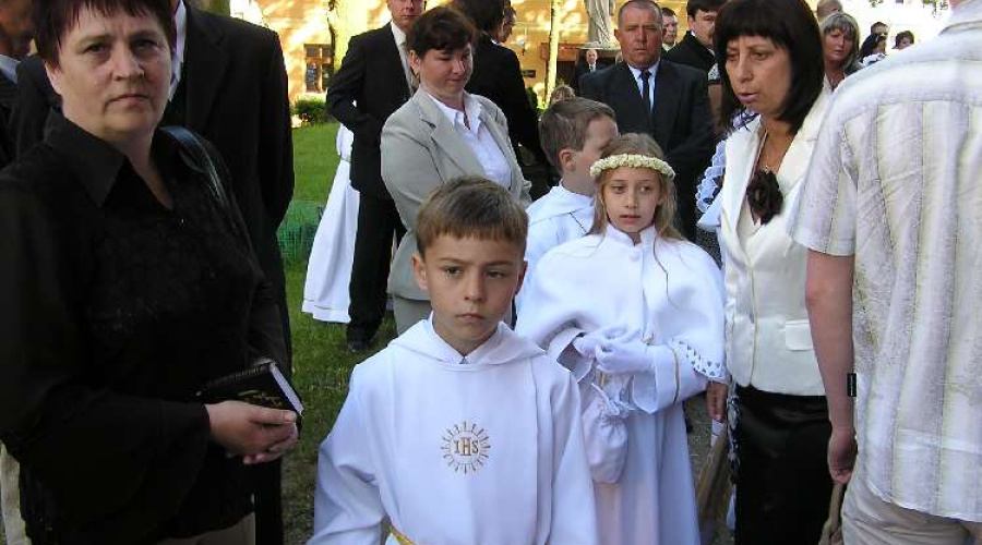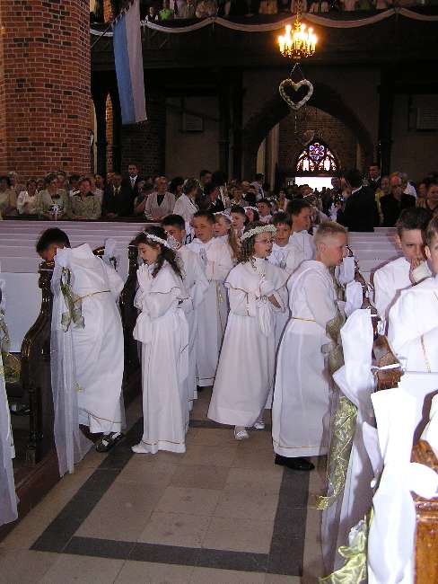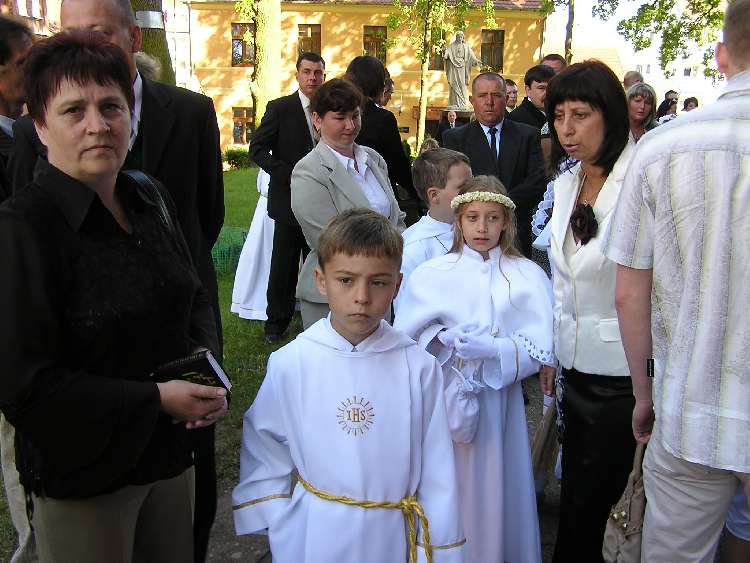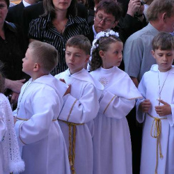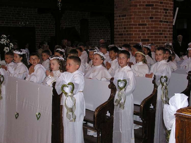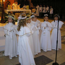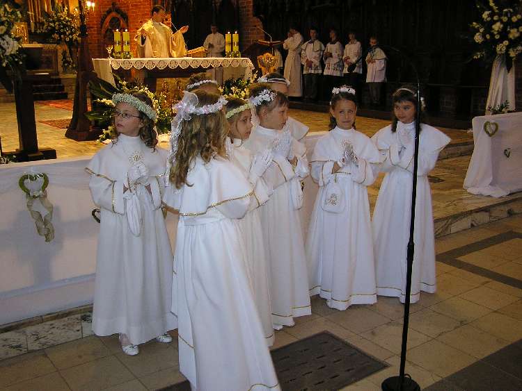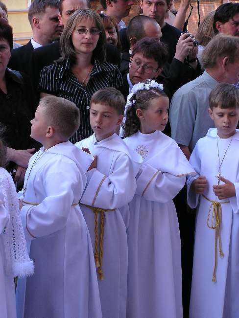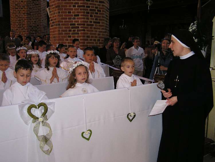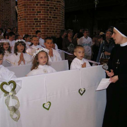 O godz. 9.00 przystąpiła po raz pierwszy do Stołu Pańskiego grupa dzieci ze Szkoły Podstawowej nr 1, a o godz. 12.00 grupa dzieci ze Szkoły Podstawowej nr 2.