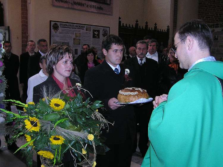 W Uroczystej Mszy Świętej udział wzięli rolnicy, przedstawiciele Władz Gminnych, parafianie. Ozdobą uroczystości były przepiękne wieńce dożynkowe. Uroczystej Mszy Świętej przewodniczył ks. kan. dziekan Andrzej Dowal, a oprawę muzyczną wykonywała Orkiestra Dęta z Płot.