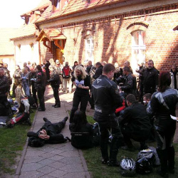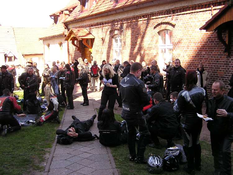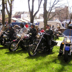 Przy Sanktuarium, z wielkimi trudnościami, zaparkowało ponad 200 motocykli. Tak dużej grupy tutaj jeszcze nie było.