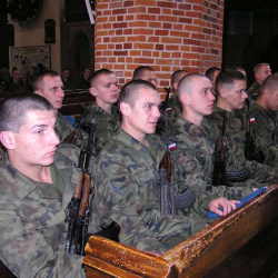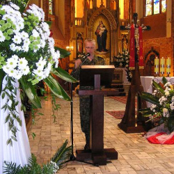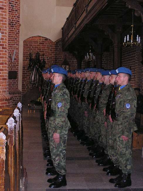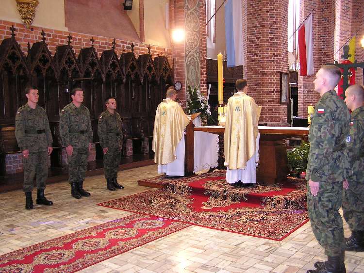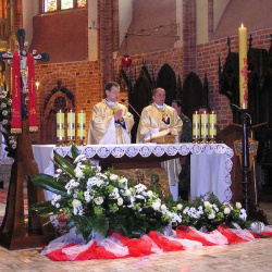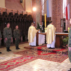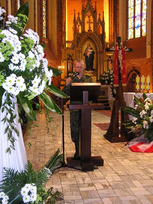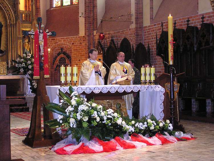 Mszę Świętą sprawowali ks. kustosz Andrzej Dowal i ks. kapelan Zbigniew Zieliński. W Sanktuarium zgromadzili się zaproszeni goście, kombatanci, Wojsko Polskie, przedstawiciela Władz Miasta, młodzież klas mundurowych z Trzebiatowa i Gościna, oraz parafianie.