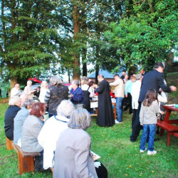 Grupa pielgrzymów z ks. Robertem o godz. 16.00 wyruszyła z Pielgrzymką na Uroczystość Odpustową. Msza Święta odpustowa, była zarazem Dziękczynieniem za tegoroczne plony. Okoliczne Słowo i Mszę Świętą poprowadził ks. Robert Wróbel.
