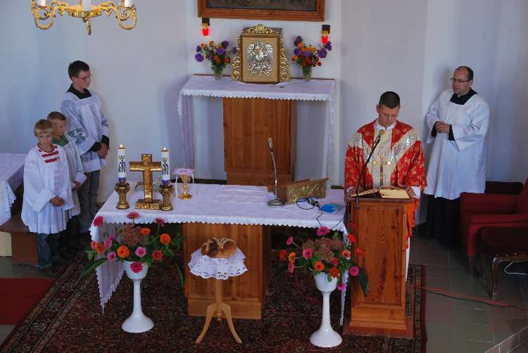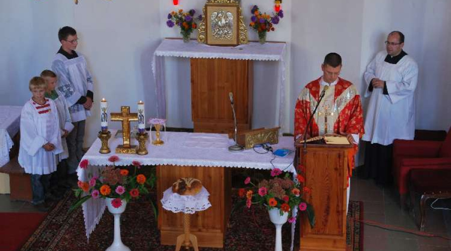 Mszę Świętą dziękczynną sprawował ks. Robert Wróbel. Uroczystą oprawę śpiewu przygotowała siostra Rachela wraz z młodzieżą. We Mszy św. wzięli udział rolnicy, parafianie z Chomętowa oraz pan Grzegorz Olejniczak vice burmistrz gminy Trzebiatów.
