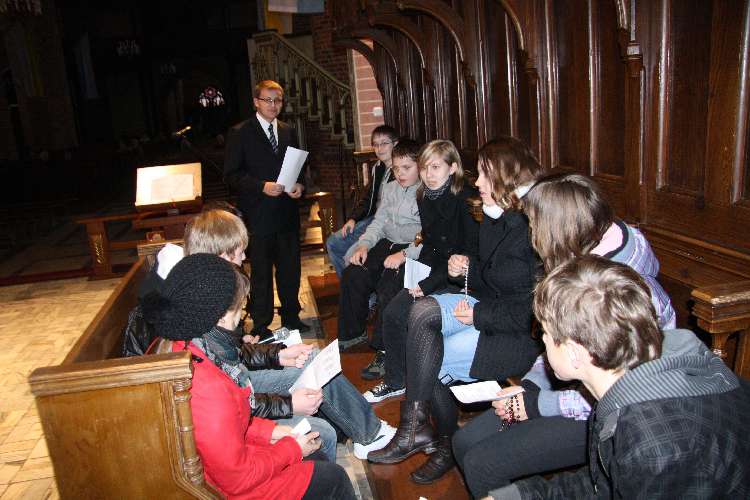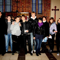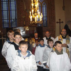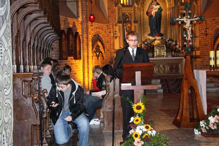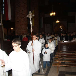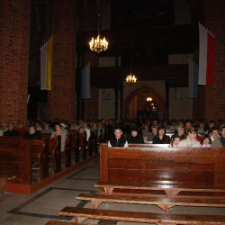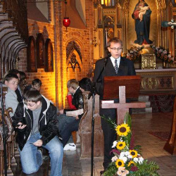 Nasza młodzież pod wodzą ks. Roberta zaprosiła nas do modlitwy różańcowej, w trakcie której rozważane były słowa naszego Wielkiego Rodaka. Dopełnieniem tych rozważań, była Uroczysta celebra sprawowna przez ks. Mariana Nohanowicza przy udziale kapłanów dekanatu i wiernych naszej wspólnoty.