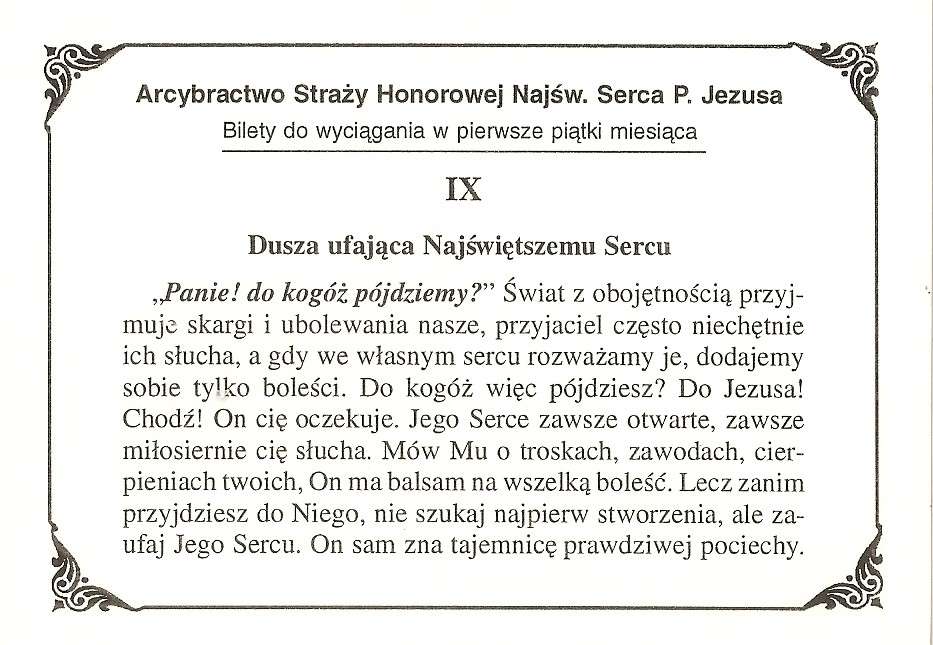 Najświętsze Serce Jezusa, źródło życia i świętości, użycz łaski wyniesienia do chwały ołtarzy wielkiej Twojej czcicielki i apostołki, siostry Marii od Najświętszego Serca – Założycielki Straży Honorowej.