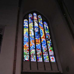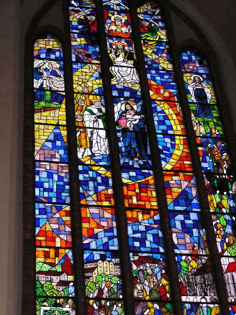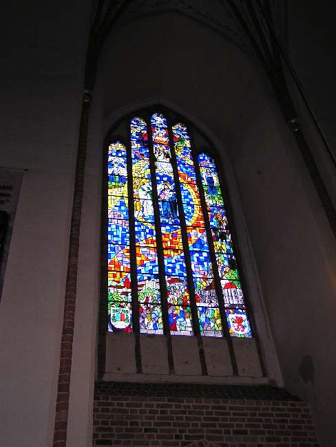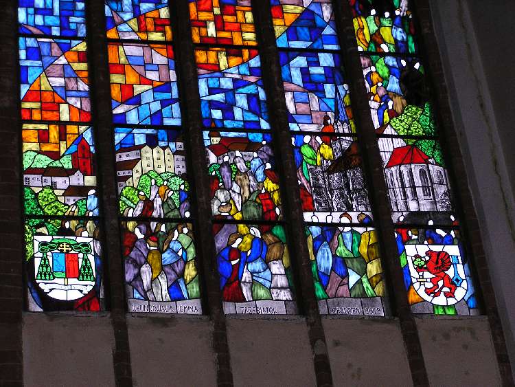 Jest to największe okno witrażowe w naszej świątyni. Przedstawia scenę Koronacji Cudownego Obrazu Matki Bożej, która odbyła się 20 maja 2006 roku. Witraż wykonał p. Nietupski z Gdańska, autor trzech witraży umieszczonych już na podwieżu naszego kościoła.