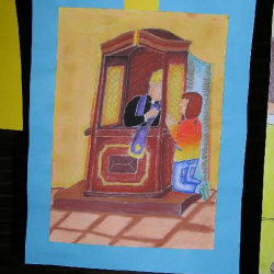 Konkurs przygotowała pani Małgorzata Labuhn. Po eliminacjach szkolnych w salce parafialnej zgormadziła się grupa finalistów. Po wypełnieniu testu w grupach wiekowych wyłonieni zostali zwycięzcy, którym w niedzielę wręczone zostały nagrody.