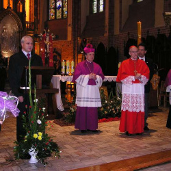 Następnie gospodarz Metropolii wyraził dziękczynienie za modlitwę ks. kardynałowi, biskupom, licznie zgromadzonym kapłanom, alumnom i siostrom zakonnym, oraz każdemu z pielgrzymów za obecność i dar modlitwy w tym miejscu. W sposób szczególny zwrócił się do samorządowców, zwracając uwagę, by wypełniając powierzony im urząd traktować najpierw, jako służbę wobec bliźniego. Podziękował także duszpasterzom, i siostrom zakonnym, na co dzień posługującym w sanktuarium za wierną służbę Bogu, u tronu Jego i Naszej matki.