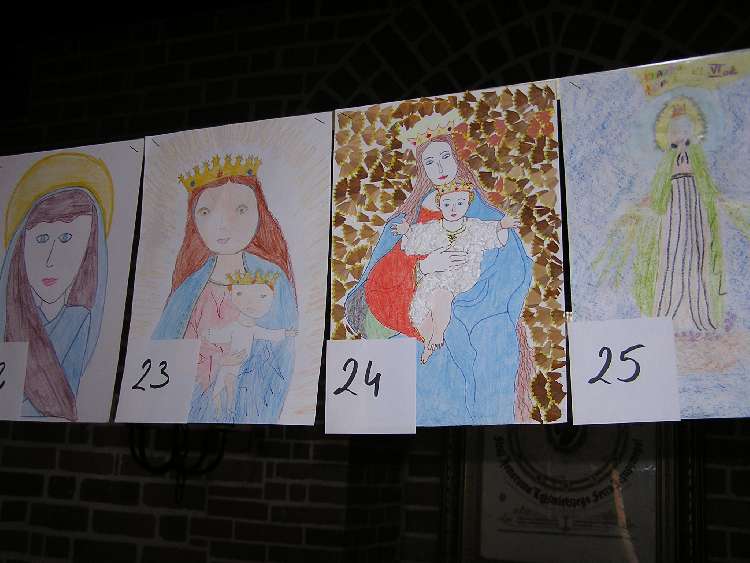 Powstały one na konkurs "Mój portret Matki Bożej. Przygotowano 66 prac, na które głosy oddawali nasi parafianie. Po podliczeniu głosów wyłonieni zostali zwycięzcy.
