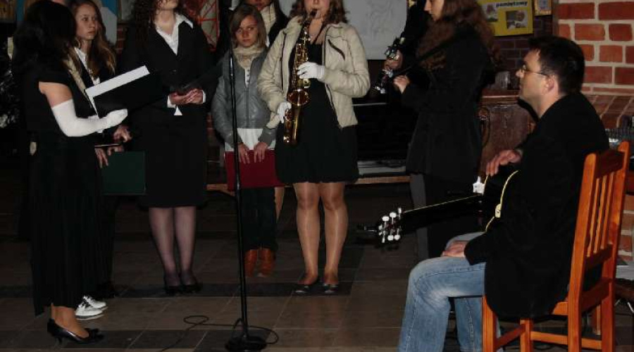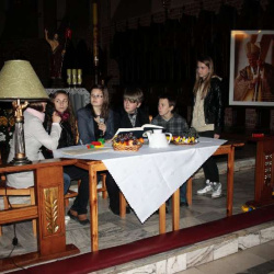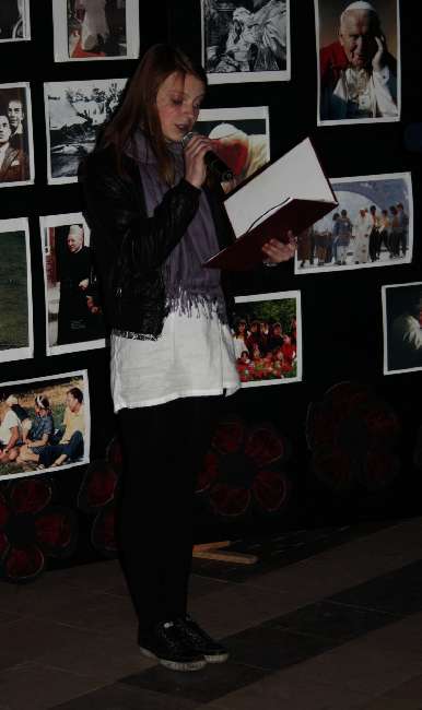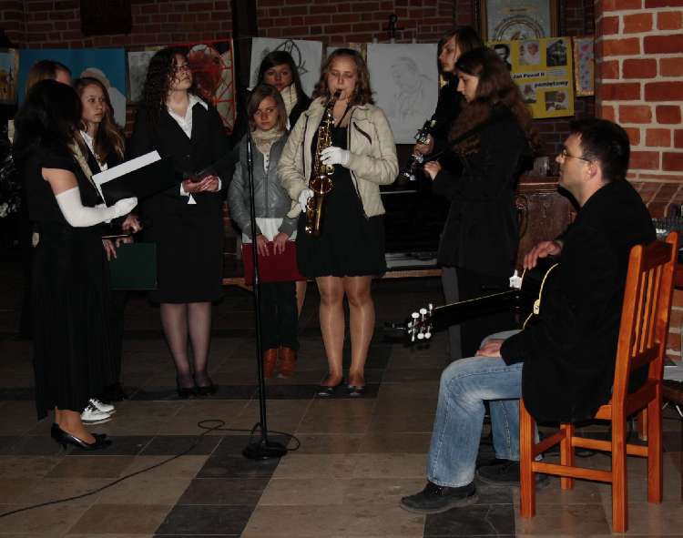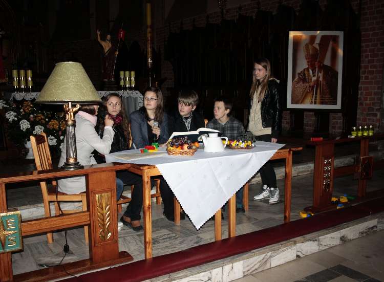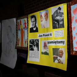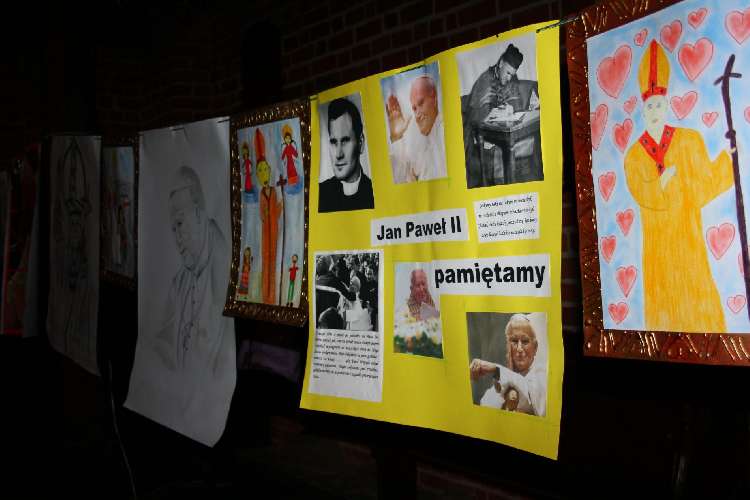 Inscenizacje przygotowała młodzież naszego Gimnazjum pod kierunkiem pani Małgorzaty Labuhn. Całość spotkania zakończyła się Apelem Jasnogórskim dziękując Bogu za dar Beatyfikacji Sługi Bożego Jana Pawła II.