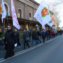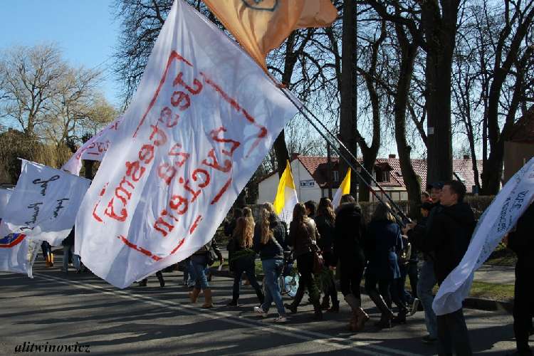 Około 170 uczestników marszu przemaszerowało przez Trzebiatów głosząc hasła antyaborcyjne. “Każde życie jest ważne, jesteśmy za życiem” – mówi nam jeden demonstrujący. Małgorzata Labuhn dodaje – “Cieszymy się, że dzisiaj tak wielu przybyło – dzieci, młodzież szkolna, ale także starsi. Z palmami w ręku kierujemy się do Sanktuarium Maryjnego”