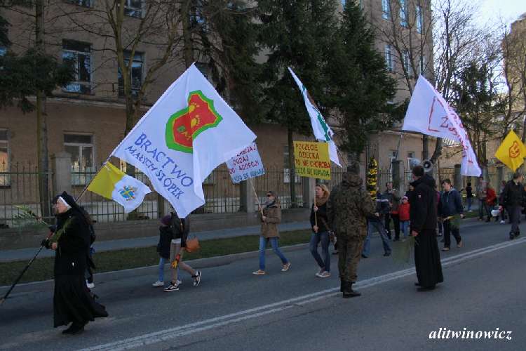 Marsz rozpoczął się w kościele Parafii Garnizonowej. Zgromadzonych “demonstrantów” przywitał Proboszcz tejże Parafii – Ksiądz Artur Majorek. Trzebiatowską grupę wsparli młodzi ludzie ze Szczecina. “W skromnym składzie przyjechaliśmy dzisiaj do Trzebiatowa, aby wspomóc naszych przyjaciół. Przywieźliśmy około 100 flag przygotowanych specjalnie na okazję “Marszu dla Życia” – zdradza nam członek Spiritus Vitea ze Szczecina.