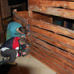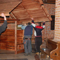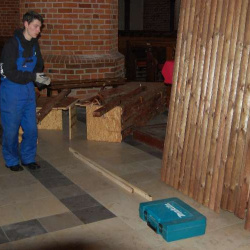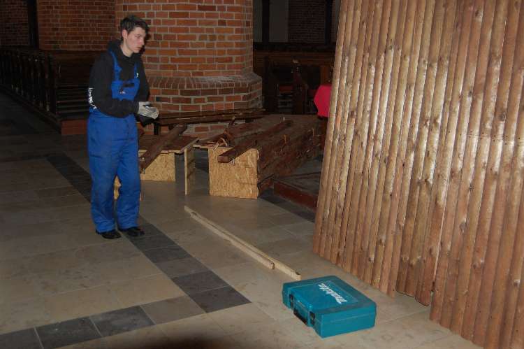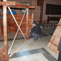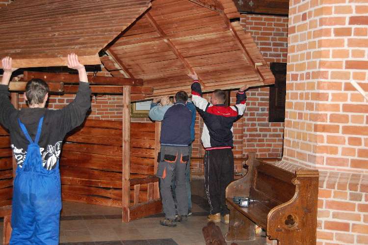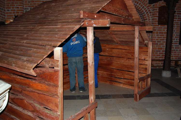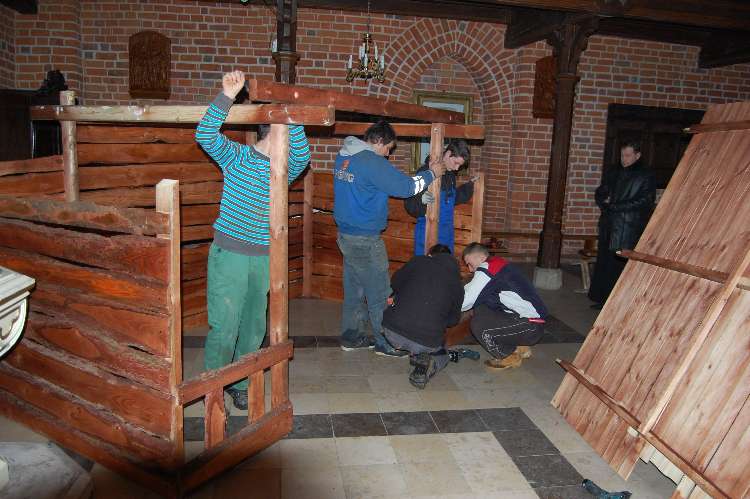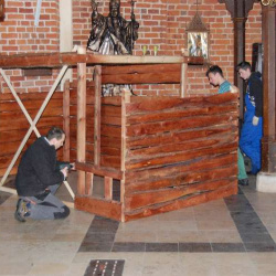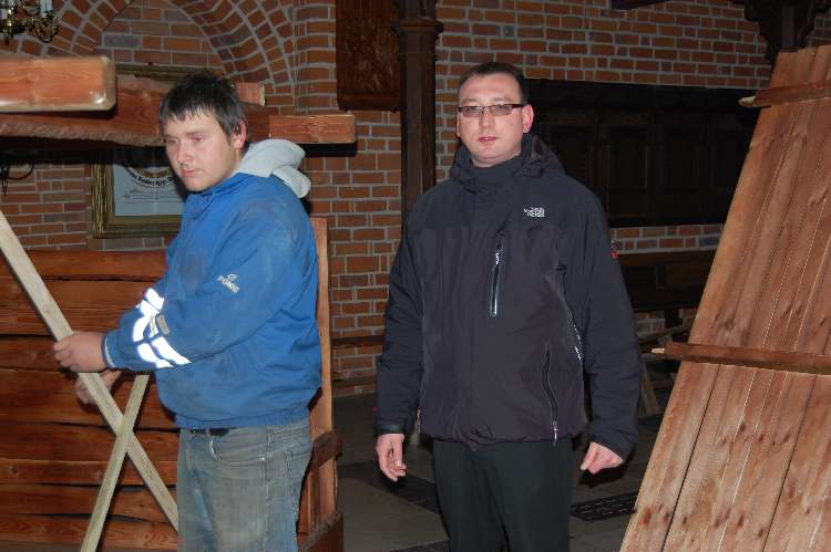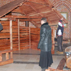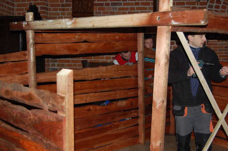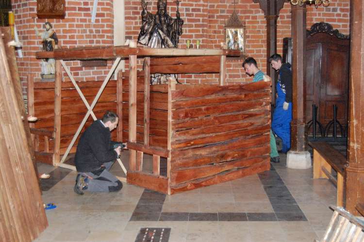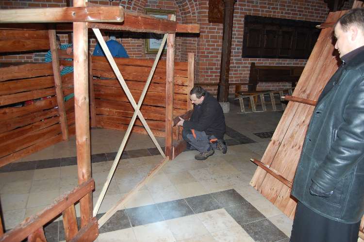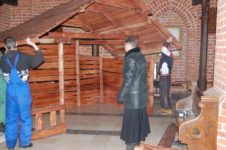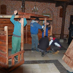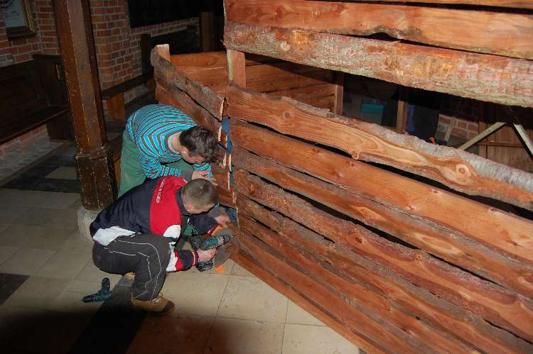 Uczniowie Zasadniczej Szkoły Zawodowej pod okiem swoich instruktorów zrobili drewnianą szopkę dla naszego Sanktuarium.
