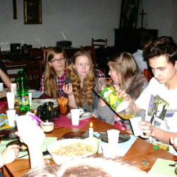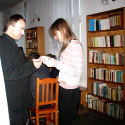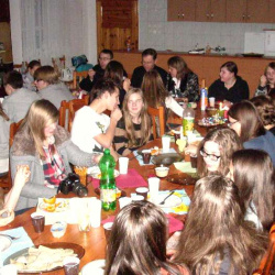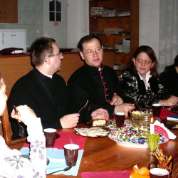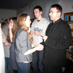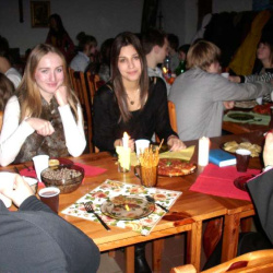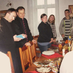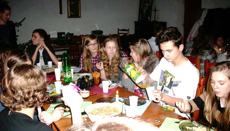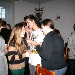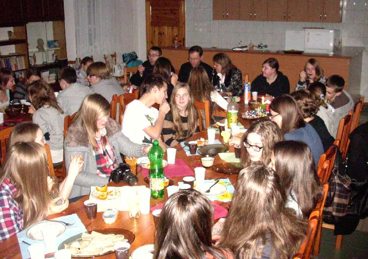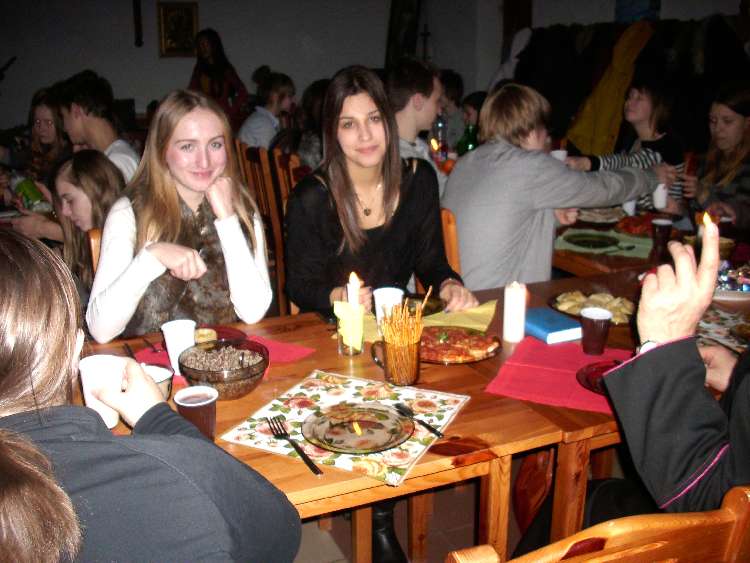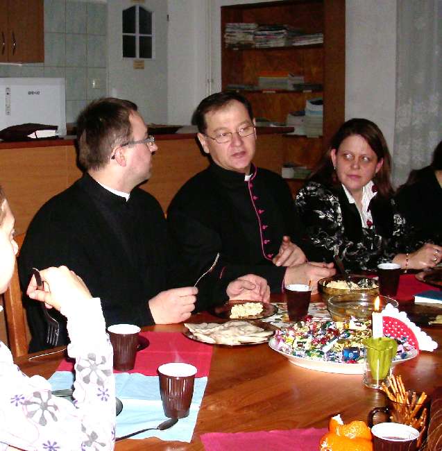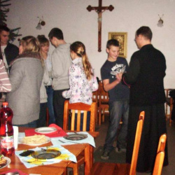 Grupy młodzieżowe działające przy parafii - "Lektorzy" i "Tęcza Noego" , spotkały się na wspólnej Wigilii w sali parafialnej. Ks. Proboszcz dr Andrzej Dowal złożył życzenia świąteczne i podzielił się z młodzieżą opłatkiem, podobnie opiekunowie grup - Pani katechetka Małgorzata Labuhn i ks. Marek. Panowała bardzo uroczysta atmosfera, pełna serdeczności i dobrego humoru.