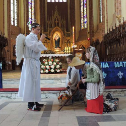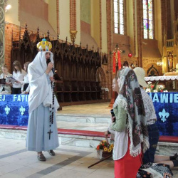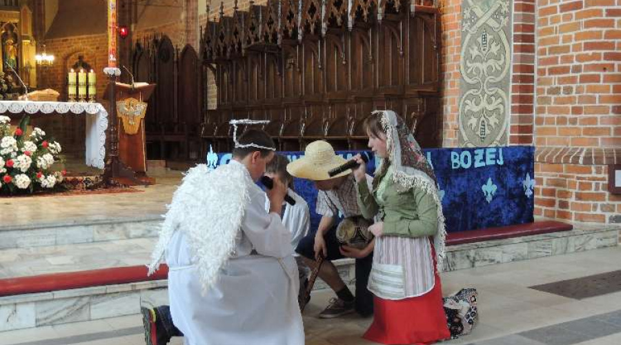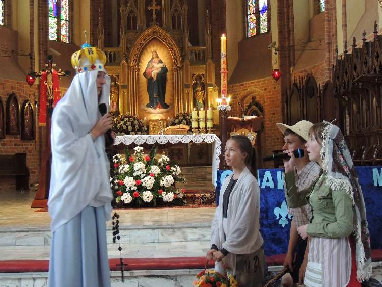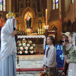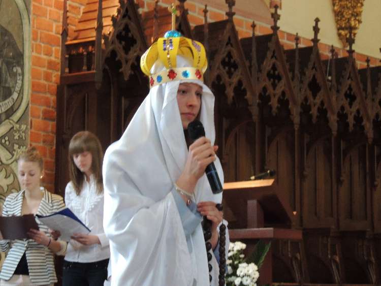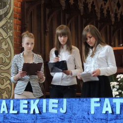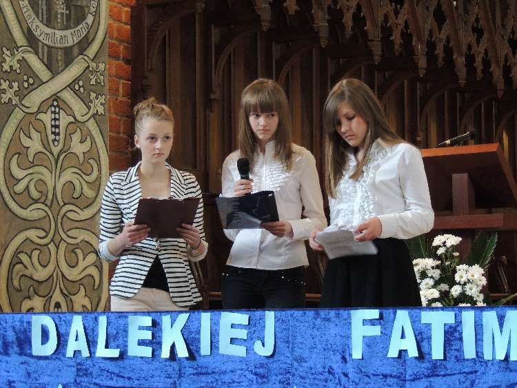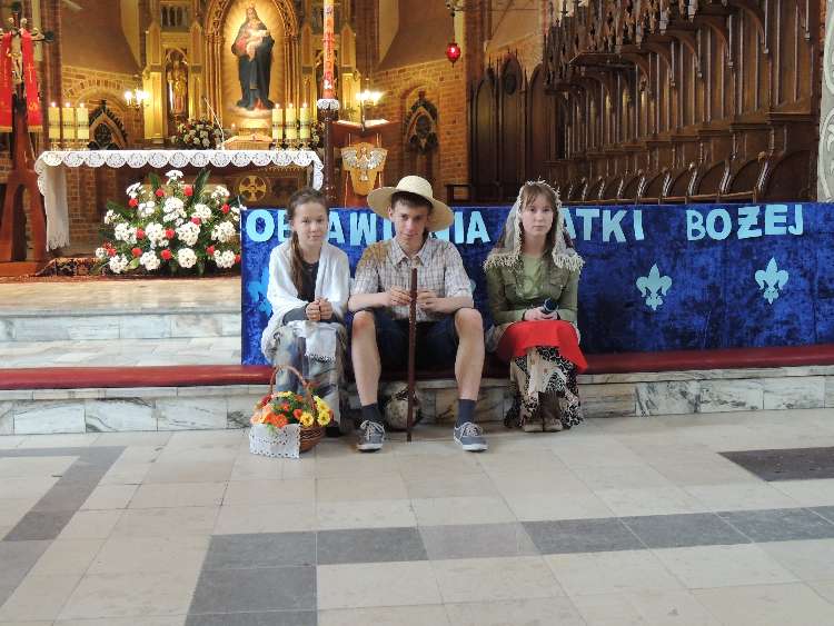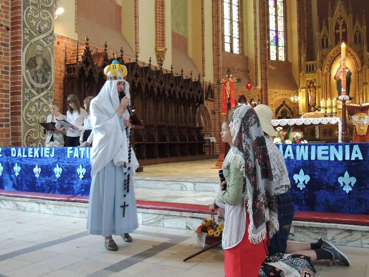 Młodzież Naszej Parafii zrzeszona w "Grupie Lektorskiej" przygotowała inscenizację poświęconą historii objawień Matki Bożej w Fatimie. Dziękujemy p. katechetce Małgorzacie Labuhn i p. Marioli Niewiadomskiej, polonistce z Gimnazjum,za pomoc w przygotowaniu tego religijnego przedstawienia.