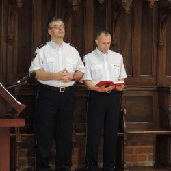 Byli to Strażnicy Miejscy wraz z bliskimi i przyjaciółmi, którzy w tym roku wybrali nasze Sanktuarium jako cel swojego pielgrzymowania. Pokonali w trzy dni trasę 550 km. Niech ten trud przyczyni się do osobistego uświęcenia i wyprosi potrzebne łaski dla najbliższych sercu.