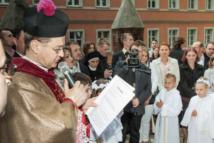 Ks. Prałat Andrzej Dowal w homilii obrazowo wyjaśnił dzieciom tajemnicę Eucharystii, wykorzystując do tego celu także mąkę i wodę. Uroczystość była przeżywana bardzo pobożnie i radośnie, co widać na załączonych fotografiach.