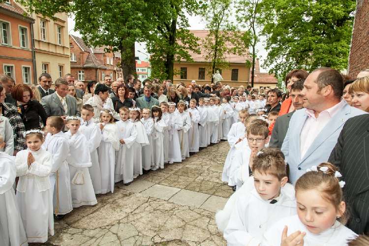 W Niedzielę 26 Maja 91 dzieci ze szkół podstawowych w Trzebiatowie przystąpiło po raz pierwszy do Stołu Pańskiego. Dziękujemy katechetom - Siostrze Antonii i p. Andrzejowi Olbrychtowi za przygotowanie dzieci do tej uroczystej chwili.