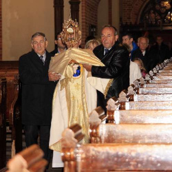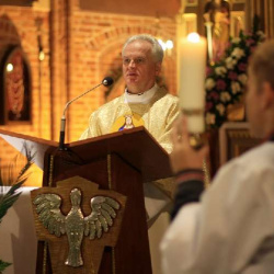 „ Jak mama ma uroczystość, to dzieci się starają, żeby być na niej obecne. Czujmy się więc dzisiaj tak, jako rodzina zgromadzona wokół Matki” - powiedział w czasie homilii ks. Kan. Kazimierz Półtorak. „W tej Eucharystii chcemy sercem poczuć, przez wiarę chcemy, aby Bóg był z nami. Tak wiele jednak zależy od współpracy naszego serca i naszego umysłu z Bożą Łaską. Maryja Matka, ze słowem matka, tak wiele nam się kojarzy. Nawet ludzie z sercem „z kamienia”, kiedy pada słowo Matka stają się inni, prawdziwi, ludzcy. Przez całe wieki Maryja patrzyła naszemu Narodowi w oczy (…) Cieszmy się, że jesteśmy tymi dziećmi, które biegną do Matki. Dziękujmy Bogu za naszą obecność przy Matce (...) Matka Najświętsza była matką dla wszystkich Polaków (...) Nie wolno kpić sobie z czyjejś matki, nie wolno człowiekowi niewierzącemu obrażać mojej matki – Maryi. Dlaczego zanikła w człowieku taka wrażliwość i wyczucie? Kiedy Matka Najświętsza spogląda nam w oczy, mówi nam „zrób wszystko, o co Syn mój ciebie prosi”.