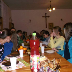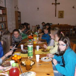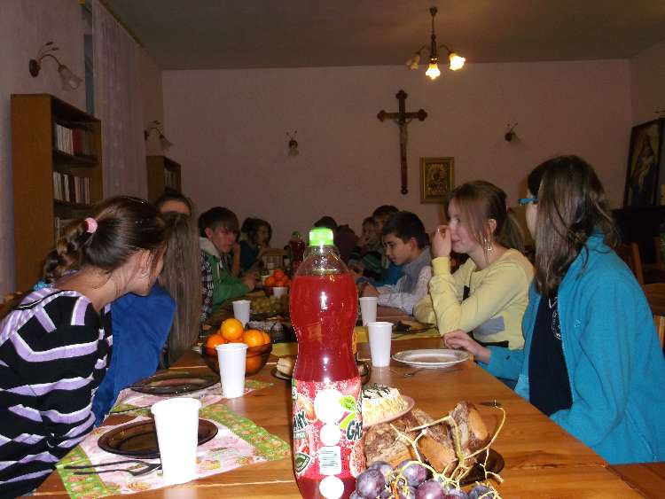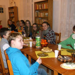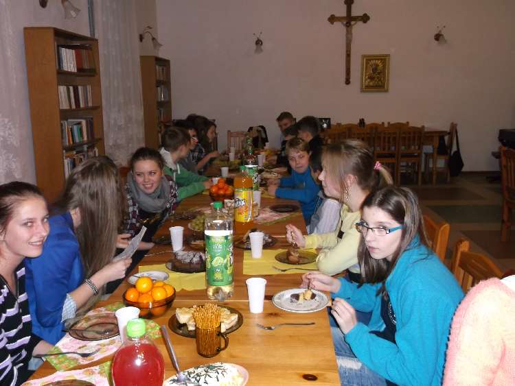 Młodzież gimnazjalna z "Grupy Lektorskiej" i młodzież ze wspólnoty "Tęcza Noego" w czwartkowe popołudnie uczciła św. Andrzeja Apostoła, patrona Ks. Proboszcza Andrzeja.