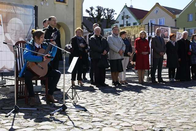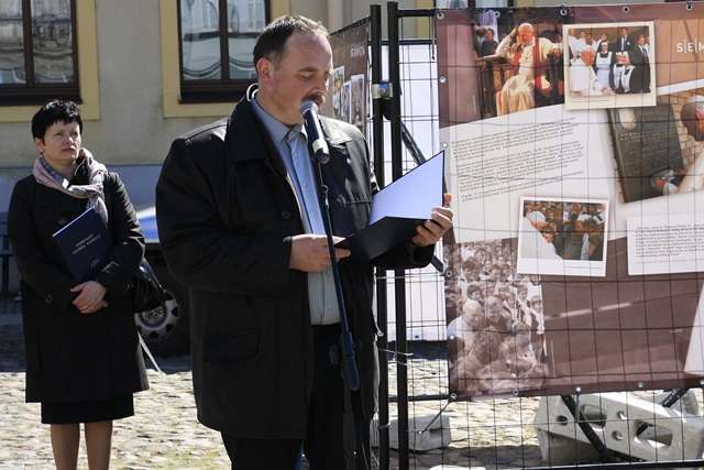 Ks. dr Andrzej Dowal - kustosz Sanktuarium Maryjnego podkreślił aktualność wystawy, która przygotowuje wiernych do dnia kanonizacji Jana Pawła II. Ks. dr Kazimierz Półtorak z Gryfic przybliżył przygotowania do wizyty Jana Pawła II w Szczecinie w 1987 roku oraz pełne chwile wzruszenia podczas papieskiej Mszy Świętej na Jasnych Błoniach. Część artystyczną przygotowały uczennice Zespołu Szkół im. Zbigniewa Herberta. Beata Pawłowska i Aleksandra Suszyńska recytowały poezję Karola Wojtyły, a Marianna Kowal z Publicznego Gimnazjum w Trzebiatowie wykonała na gitarze utwór "Barka". Otwarcia wystawy dokonał Henryk Mruk – przewodniczący NSZZ "Solidarność" Pracowników Oświaty i Wychowania oraz Zdzisław Matusewicz - Burmistrz Trzebiatowa.