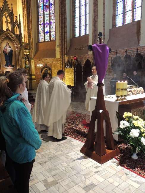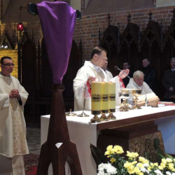 Uroczystą liturgią Mszy Wieczerzy Pańskie w Sanktuarium Ks. Prałat Andrzej Dowal rozpoczął obchody Triduum Paschalnego. Homilię wygłosił Ks. wikariusz Przemysław Kryszczyński. Podczas liturgii Ks. Prałat umył nogi 12 mężczyznom, nawiązując do gestu Chrystusa umywającego nogi 12 Apostołom na znak uniżenia i służby. Na zakończenie celebracji Najświętszy Sakrament został przeniesiony do tzw. "ciemnicy" jako wspomnienie pojmania Jezusa w Ogrójcu i uwiezienia.