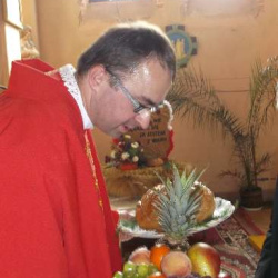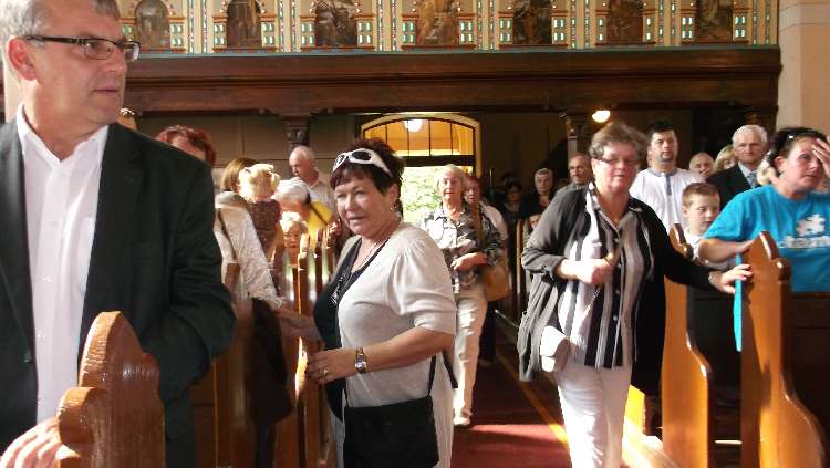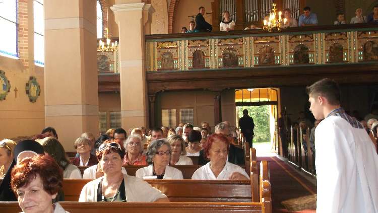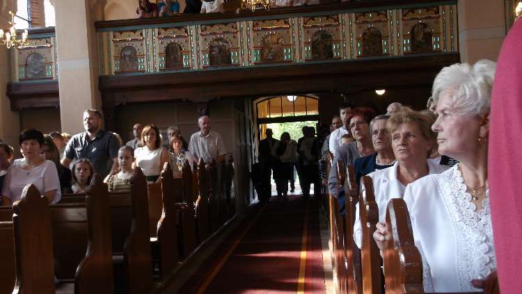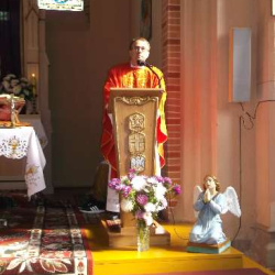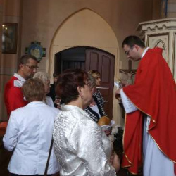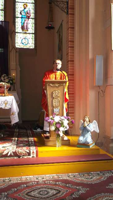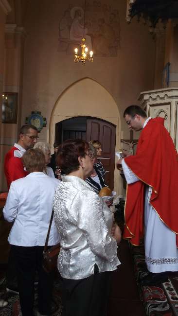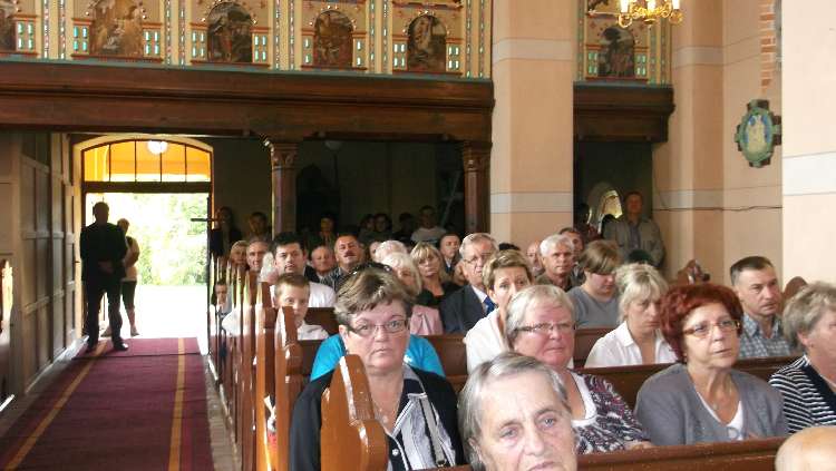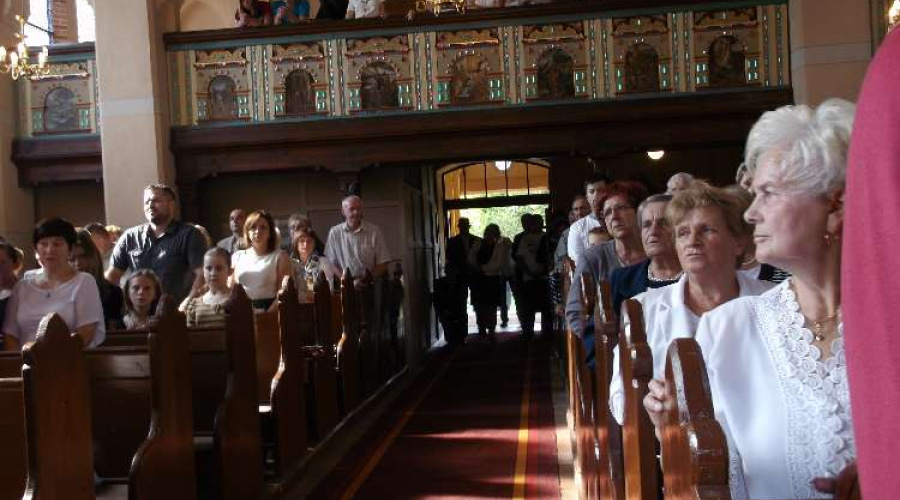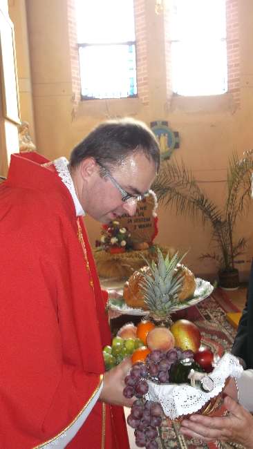 Mszę celebrował ks. Marek i wygłosił homilię poświęconą historii odnalezienia Drzewa Chrystusowego , zaś ks. Prałat Andrzej służył posługą w konfesjonale. Na uwagę zasługuje piękny wieniec dożynkowy, jako wotum wdzięczności za tegoroczne zbiory.