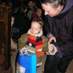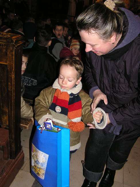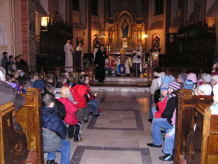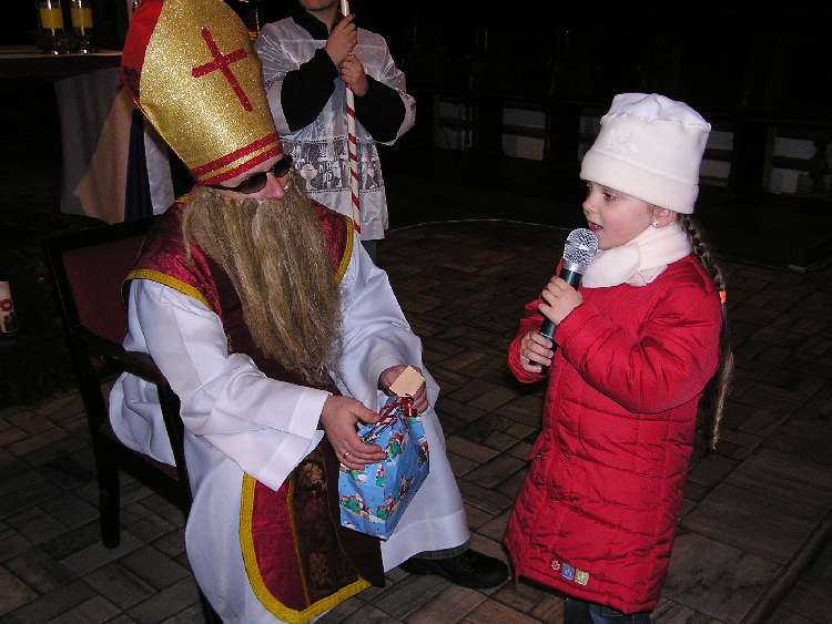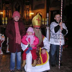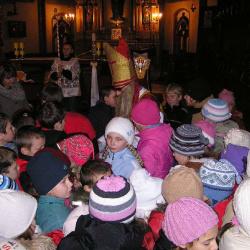 Po Mszy świętej Roratniej odbyło się niecodzienne spotkanie. Gościliśmy św. Mikołaja, który dla grzecznych dzieci przywiózł prezenty. Obiecaliśmy, że tak jak On, przez cały rok będziemy dzielić się dobrocią i miłością z innymi. Za rok św. Mikołaj będzie się mógł przekonać, czy tak się stało.