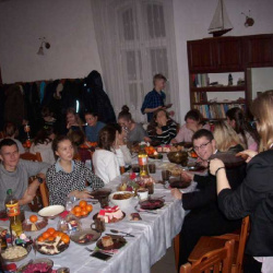 Na tak wyjątkowe spotkanie przyszli lektorzy, którzy uczą się w Publicznym Gimnazjum w Trzebiatowie oraz nasi absolwenci, którzy nadal czytają podczas niedzielnych Mszy Świętych i uroczystości. Wszystkich lektorów obecnych na wigilijnej wieczerzy było 32 osoby. Spotkanie zorganizowała Pani Małgorzata Labuhn - katechetka w naszym gimnazjum, a zaproszony został ks .Piotr Haluch również nasz katecheta. Potrawy wigilijne przygotowali rodzice lektorów. Na spotkaniu dzieliliśmy się opłatkiem i śpiewaliśmy kolędy oraz kosztowaliśmy przepysznych potraw. Wszyscy dobrze się bawili i humory dopisywały. Spotkamy się pewnie w tak licznym gronie przed Wielkanocą.