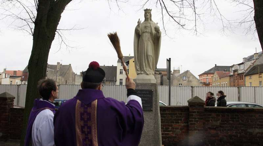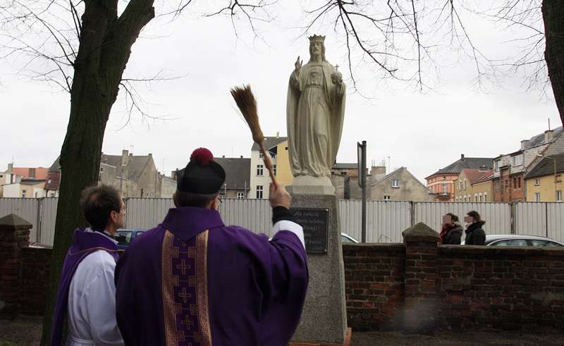 W Środę Popielcową ks. Prałat po Mszy św. dokonał poświęcenia na Placu Kościelnym Drogi Krzyżowej i figury Chrystusa Króla Wszechświata.