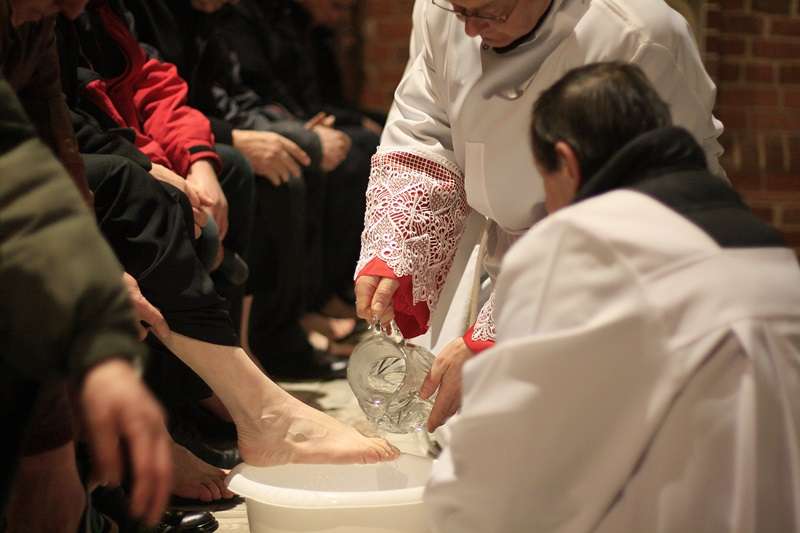 Podczas liturgii Ks. Prałat umył nogi 12 mężczyznom, nawiązując do gestu Chrystusa umywającego nogi 12 Apostołom. Na zakończenie celebracji Najświętszy Sakrament został uroczyście przeniesiony do tzw. "ciemnicy", upamiętniającej pojmanie Jezusa w Ogrójcu i pobyt w areszcie.