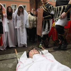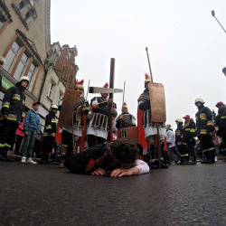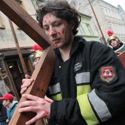 Jak co roku wyruszyliśmy z krzyżem na ulice naszego Trzebiatowa, by oddać cześć Bogu, który za nas złożył życie w ofierze. Rozważania Drogi Krzyżowej czytali przedstawiciele różnych stanów, grup wiekowych i duszpasterstw. Wielu naszych parafian podążyło tą drogą, by dać świadectwo wiary. Dziękujemy wszystkim, dzięki którym ta Droga Krzyżowa mogła się odbyć, szczególnie młodzieży z Zakładu Doskonalenia Zawodowego oraz Gimnazjum z Trzebiatowa i Mrzeżyna za przygotowanie okolicznościowej inscenizacji Męki Pańskiej. Dziękujemy służbom mundurowym za pomoc i zabezpieczenie trasy.