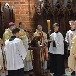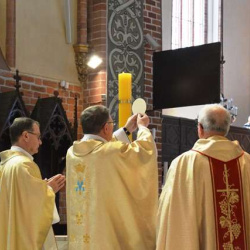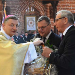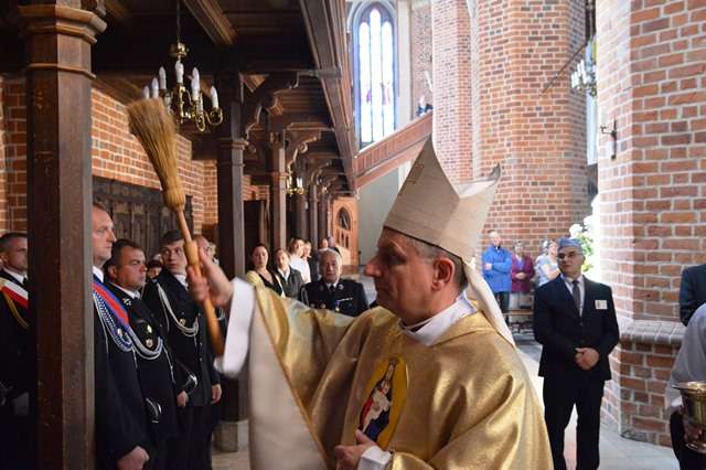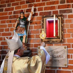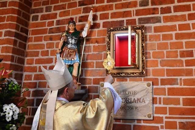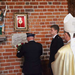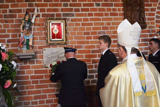 Pod koniec Mszy Św. Ks. Bp Krzysztof Zadarko dokonał instalacji relikwii Św. Floriana, które, staraniem Komandorii Północnej Św. Floriana, na stałe zostały sprowadzone z Krakowa do naszej świątyni. Św. Florian jest Patronem zachowującym od nieszczęść pożarów oraz patronuje wszystkim Strażakom.