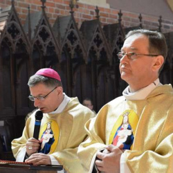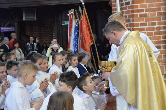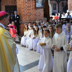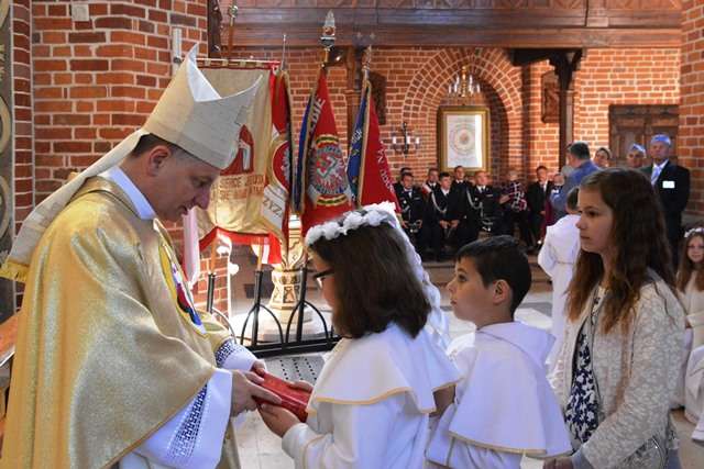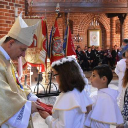 Podczas tej szczególnej uroczystości rocznicę Pierwszej Komunii Świętej przeżywały wraz z rodzinami dzieci klas czwartych. Każde z dzieci otrzymało z rąk Ks. Biskupa indywidualne błogosławieństwo oraz egzemplarz Pisma Świętego.