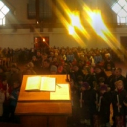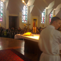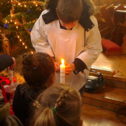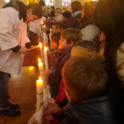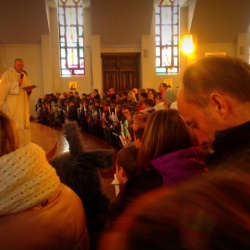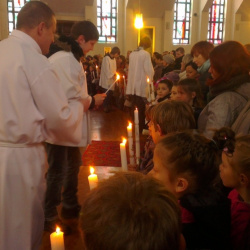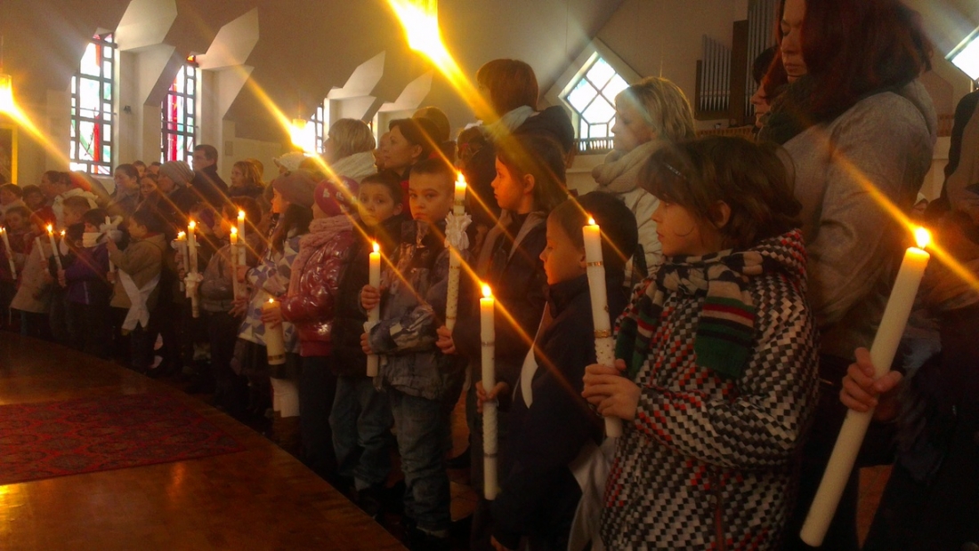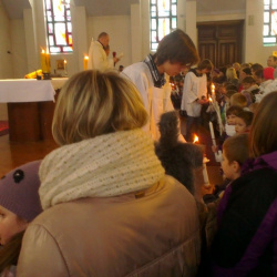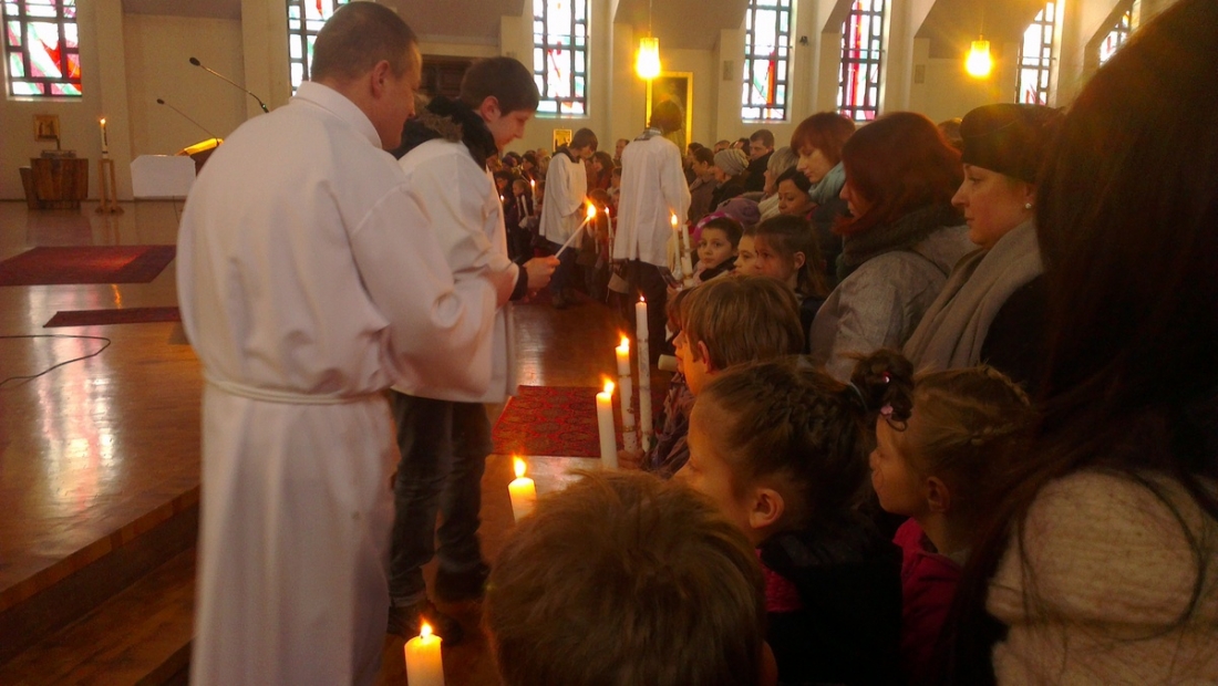 Dzieci wraz z rodzicami oraz rodzicami chrzestnymi spotkali się na niedzielnej eucharystii, by wspomnieć i odnowić słowa wypowiadane podczas chrztu św.