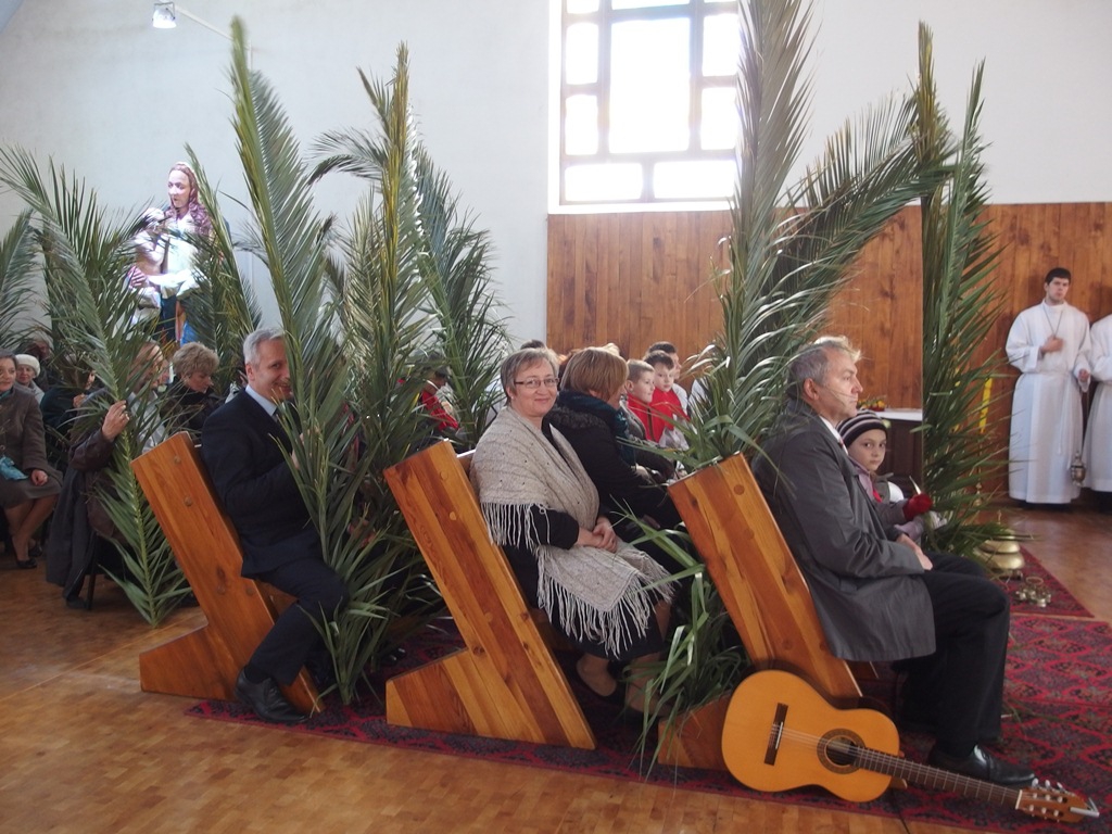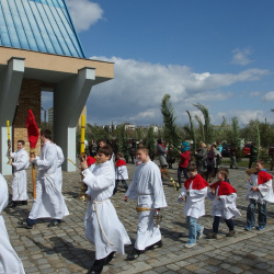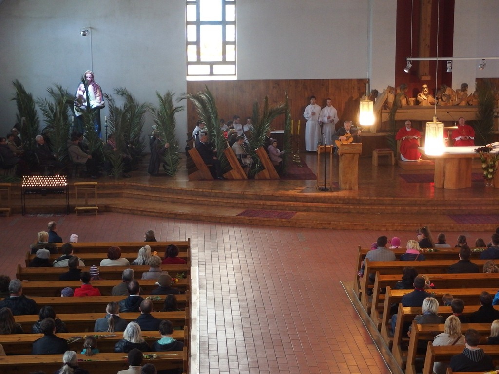 Jak to już jest w zwyczaju naszej parafii, Niedziela Palmowa jest obchodzona w bardzo uroczysty sposób. Przed Mszą Świętą o godz. 13.oo, członkowie Wspólnot Neokatechumenalnych otrzymali z rąk kapłanów, przywiezione z Włoch, świeże gałązki palmowe. Po odczytaniu fragmentu Ewangelii traktującym o wjeździe Pana Jezusa do Jerozolimy oraz krótkiej modlitwie, z radosnym śpiewem na ustach, naśladując rzesze, które witały Pana Jezusa, wyruszyliśmy w uroczystej procesji dookoła naszej świątyni. Po radosnym wejściu do świątyni uczestniczyliśmy w Eucharystii, wspominając ofiarę krzyża Jezusa. Powyżej prezentujemy fotogalerię z tego wydarzenia.