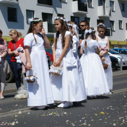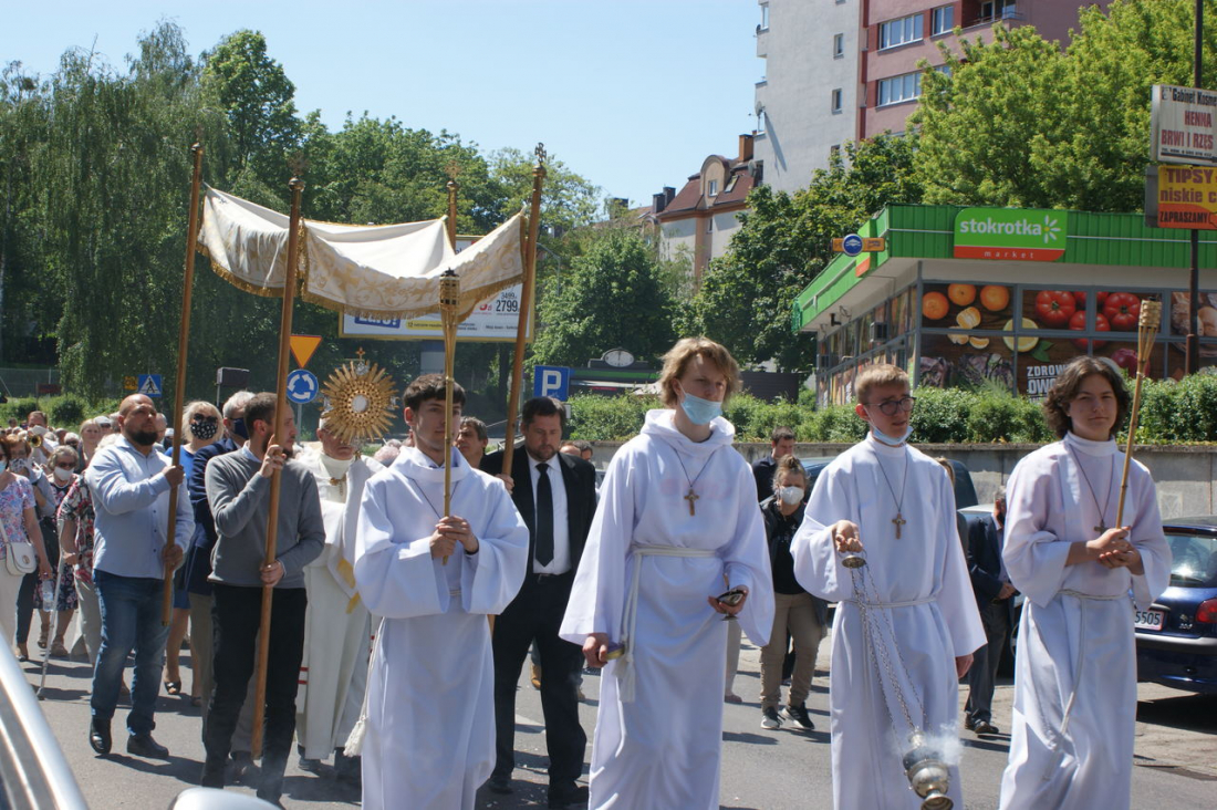 W roku 2021 Uroczystość Najświętszego Ciała i Krwi wypadła w dniu 3 czerwca. Procesja przeszła następującymi ulicami: Stanisława Staszica, Ofiar Oświęcimia, Kadłubka, Niemcewicza, Cyryla i Metodego, Marcina i Rynkową. Odbyła się ona w reżimie sanitarnym stąd nie budowaliśmy tradycyjnych ołtarzy.