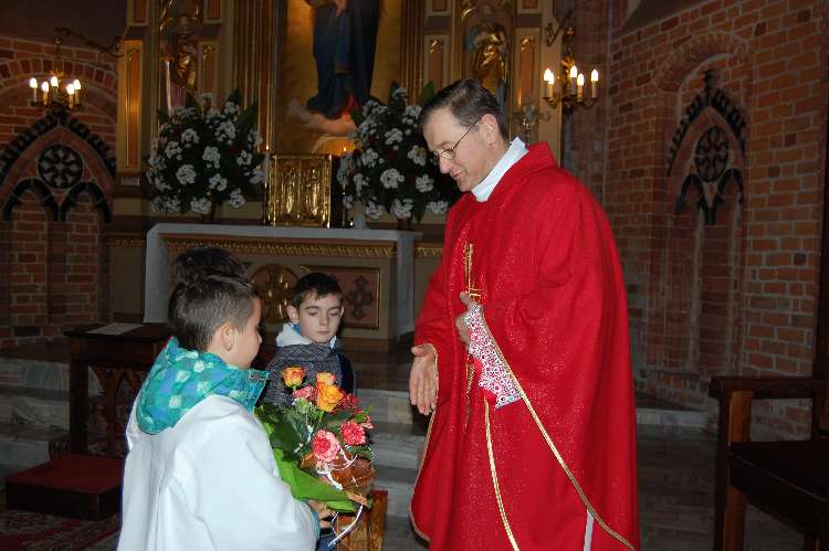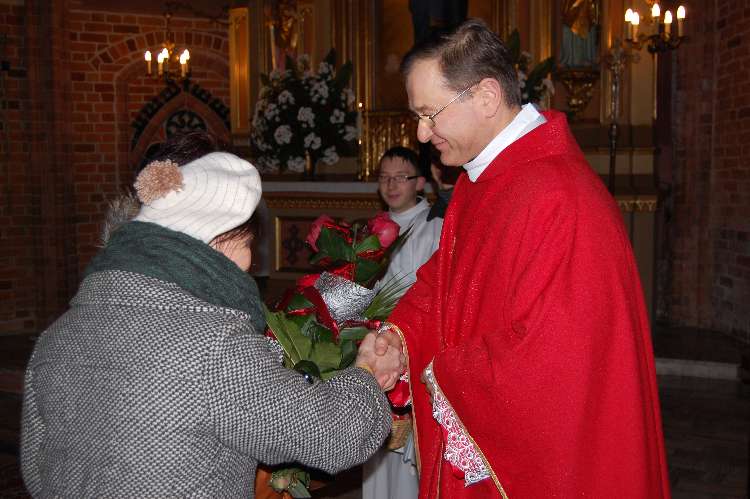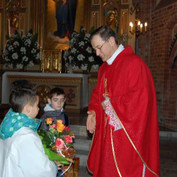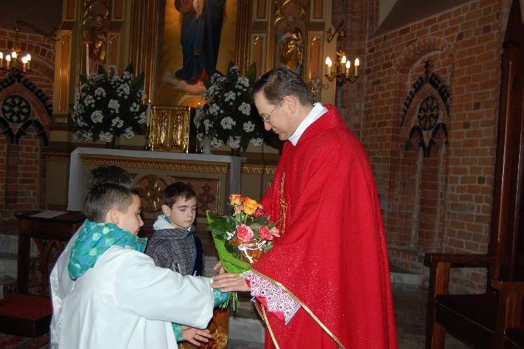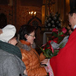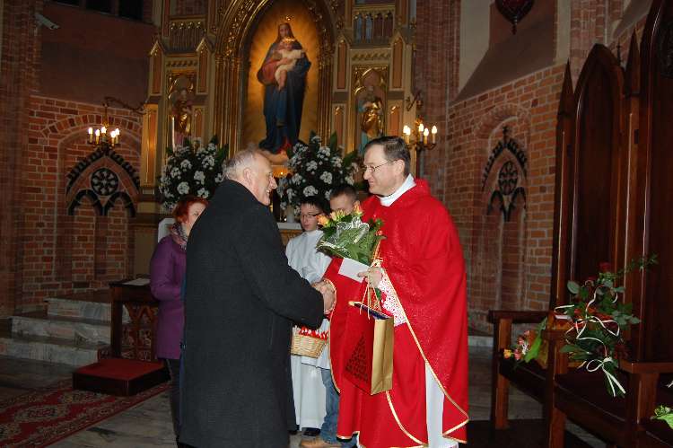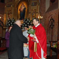 Podczas Mszy Świętej Ksiądz Kanonik Andrzej dziękował Panu Bogu za łaskę powołania kapłańskiego, a także wszystkim obecnym za przybycie i modlitwę.Na zakończenie Eucharystii życzenia składali księża współpracownicy, służba liturgiczna ołtarza, dzieci, Róże Różańcowe, Caritas, Straż Honorowa NSPJ, delegacje z kościołów i kaplic filialnych i wielu indywidualnych parafian i znajomych. Życzymy Księdzu Kanonikowi Andrzejowi wiele łask Bożych i opieki naszej Patronki Pani Trzebiatowskiej. Szczęść Boże!