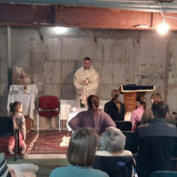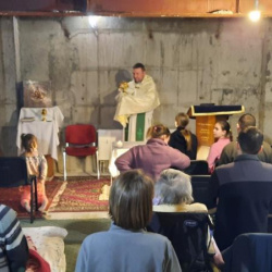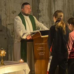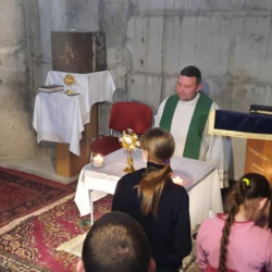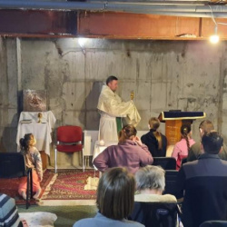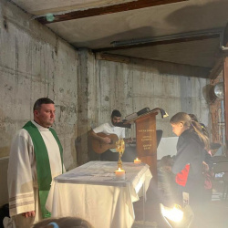Ks. Mateusz Adamski w pierwszych latach swojego życia mieszkał na terenie naszej parafii przy ulicy Kazimierza Królewicza. W 2013 r. został wyświęcony na prezbitera po ukończeniu Diecezjalnego Misyjnego Seminarium Redemptoris Mater w Kijowie. Od lata 2021 r. jest proboszczem parafii pw. Zaśnięcia NMP w Kijowie. Jego rodzice są w I wspólnocie neokatechumenalnej naszej parafii. W czasie, gdy ks. Mateusz był formatorem Diecezjalnego Misyjnego Seminarium Redemptoris Mater w Kijowie, odwiedził z alumnami naszą parafię.
