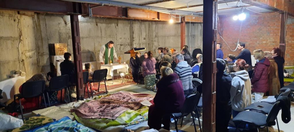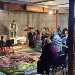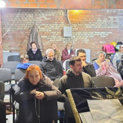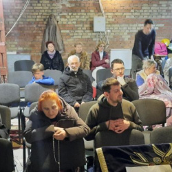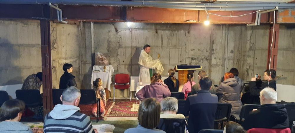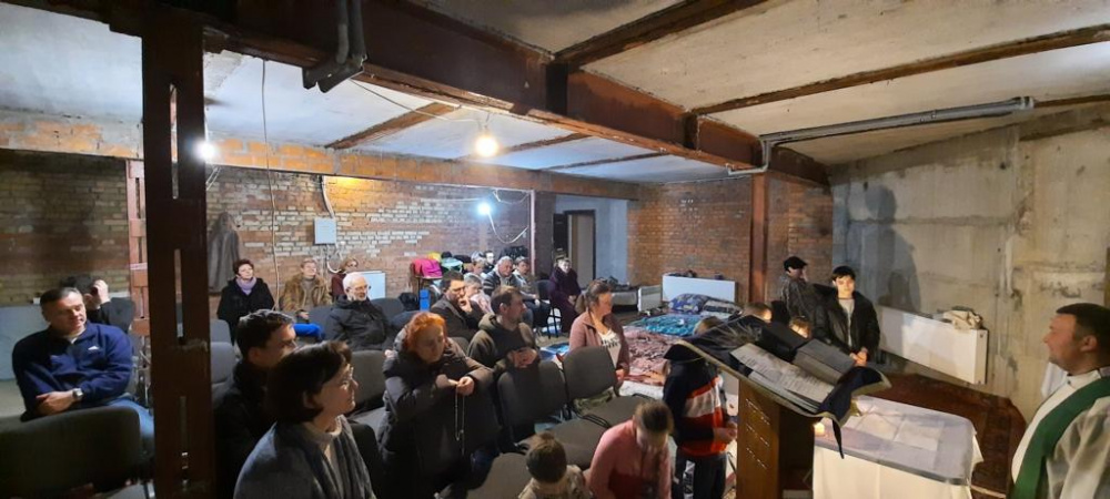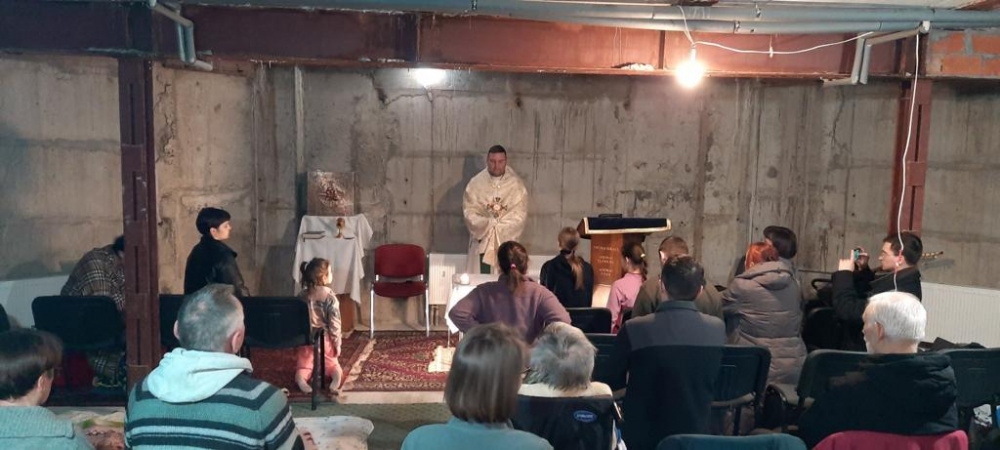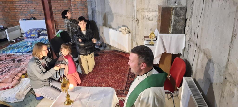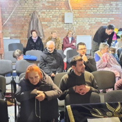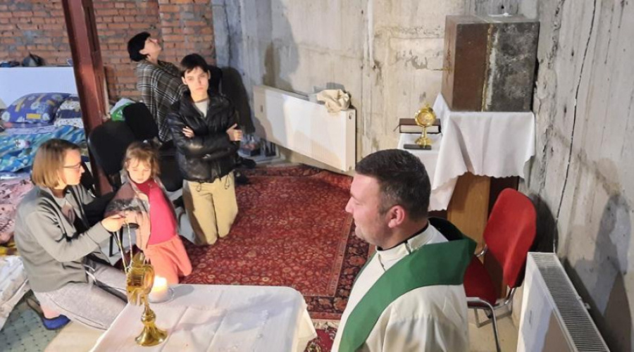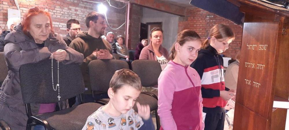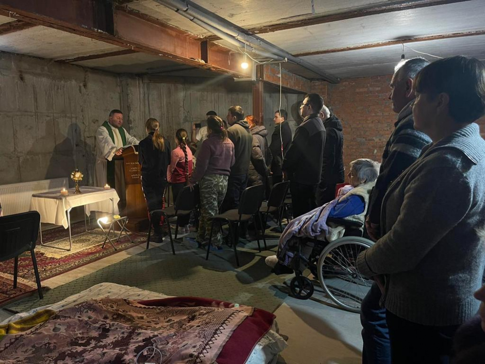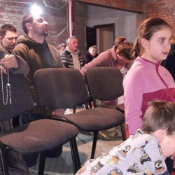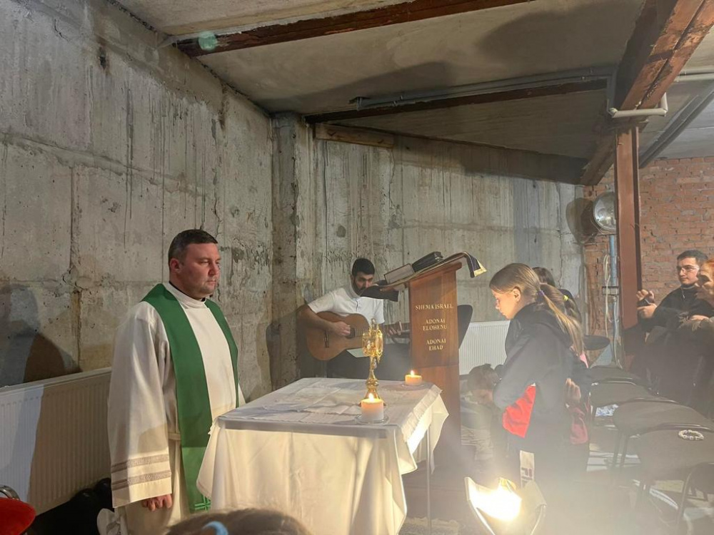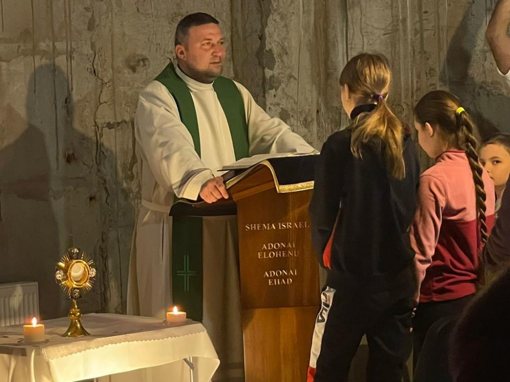 Ks. Mateusz Adamski z wiernymi parafii rzymskokatolickiej pw. Zaśnięcia NMP w Kijowie