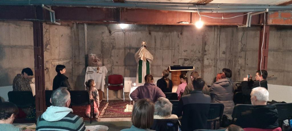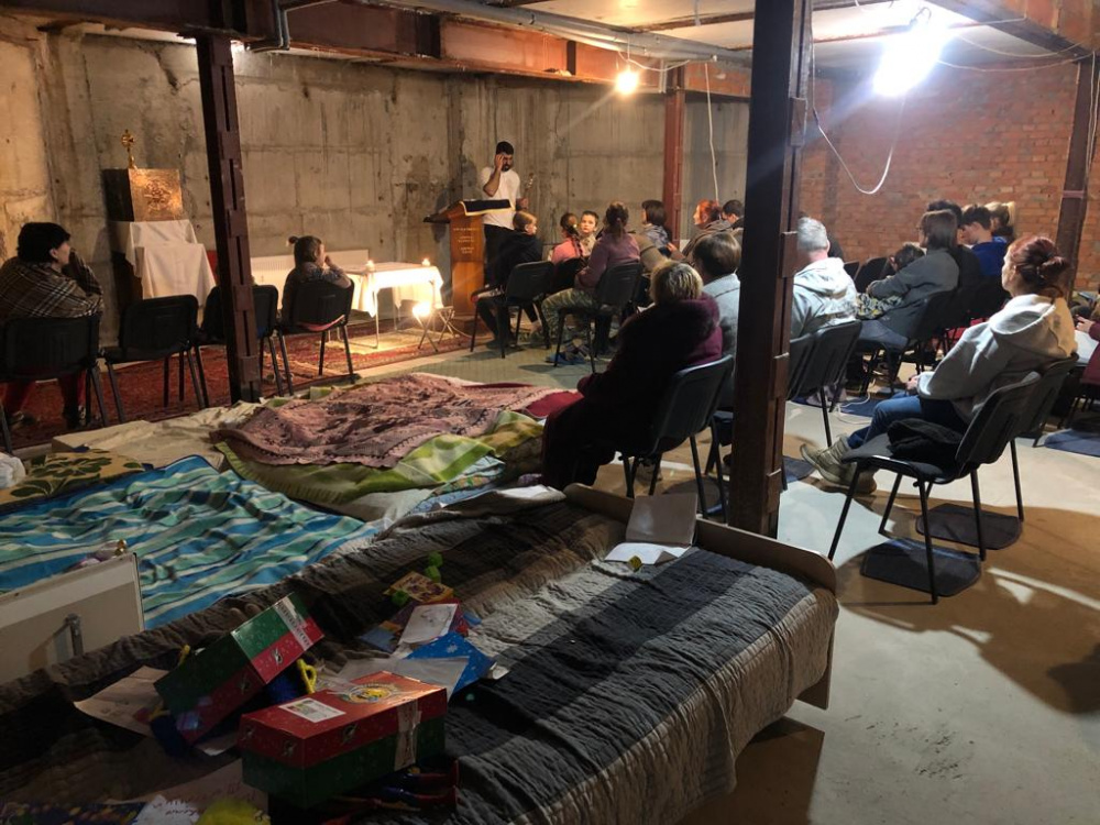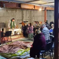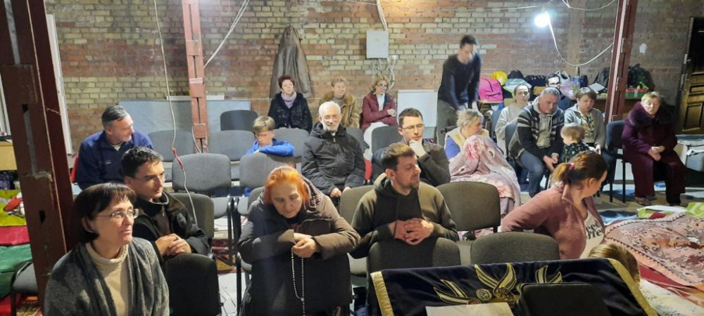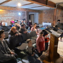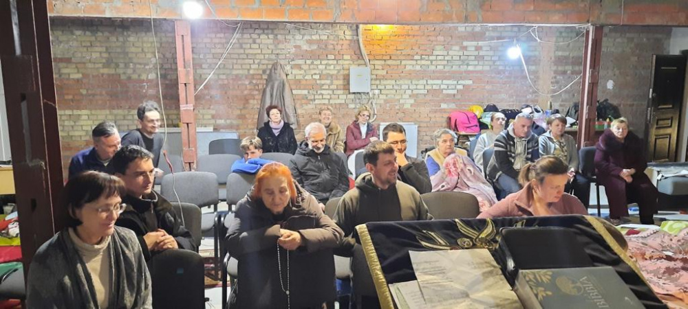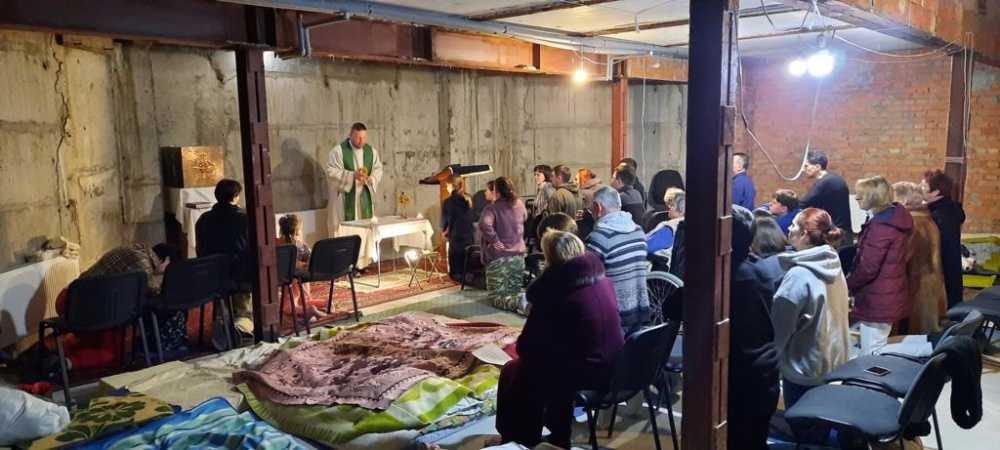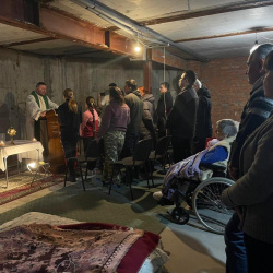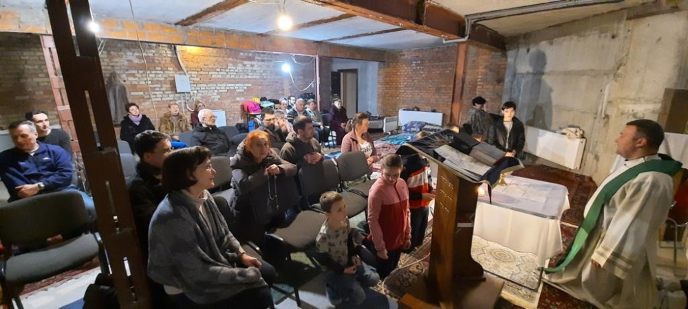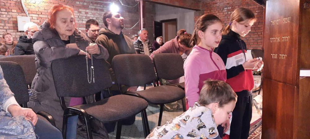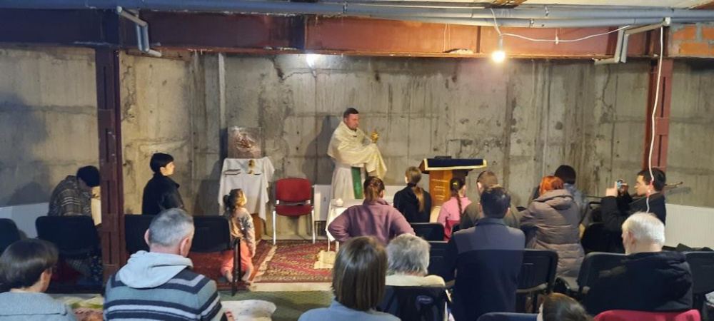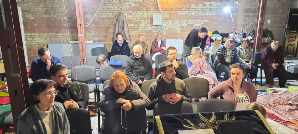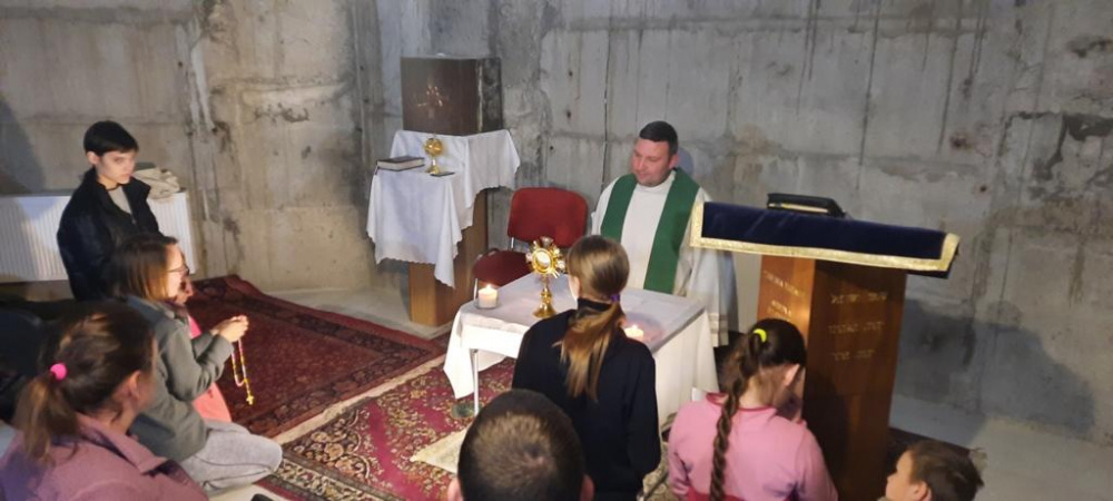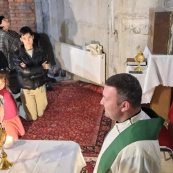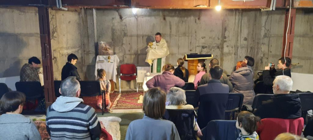 Ks. Mateusz Adamski z wiernymi parafii rzymskokatolickiej pw. Zaśnięcia NMP w Kijowie